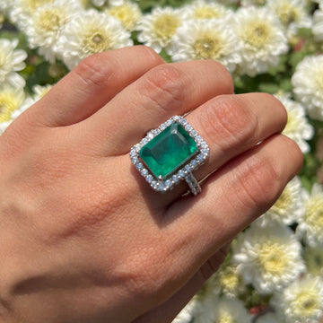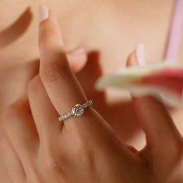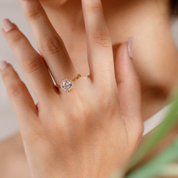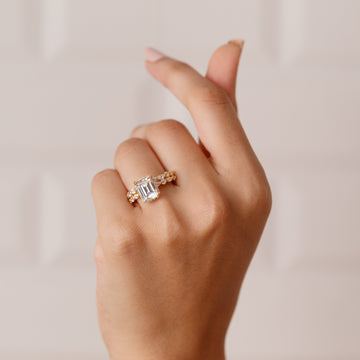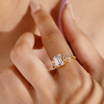 Exude feminine charm with our Emerald-Cut Solitaire Ring. Crafted with intricate petals of shimmering 5A+...