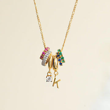 The Love Cluster Necklace dazzles with a lively array of colorful stones and whimsical charms,...