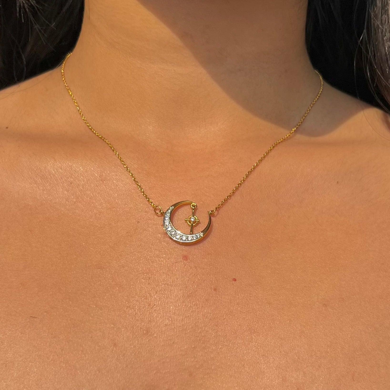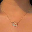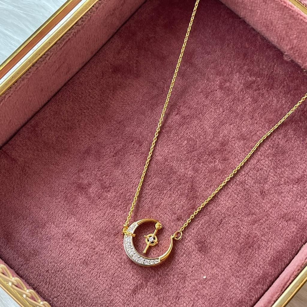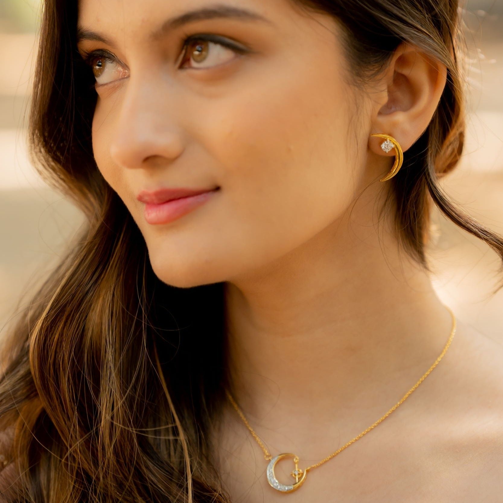 DESIGN: A 5A+ Austrian Zircon Diamond studded crescent moon with a twist makes for the charming pendant of this celestial necklace that radiates sophistication to the core.