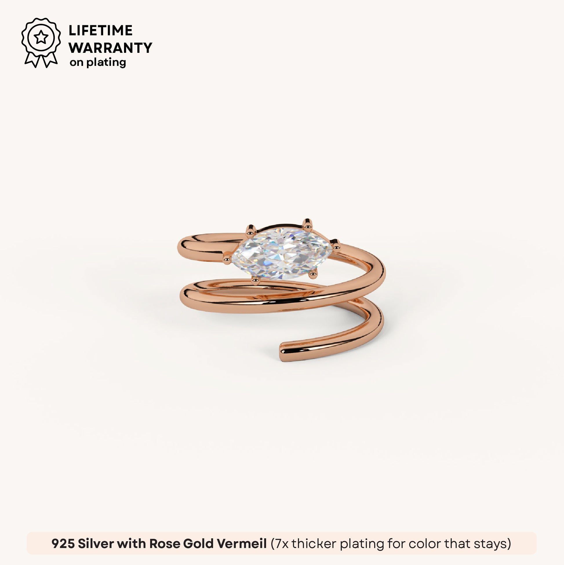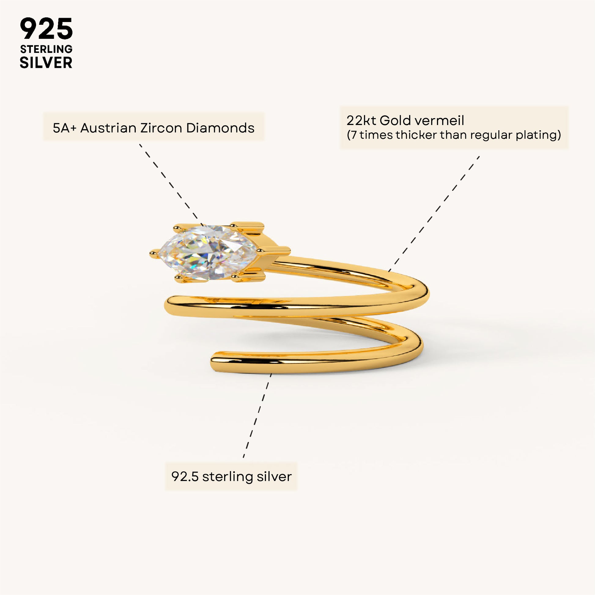 A trio of sleek bands crowned with a marquise-cut zircon, the Aurora Stack Ring blends modern flair with timeless shine. Crafted in 92.5 Sterling Silver, Plated 22k gold Vermeil with 7x thicker coating and studded with best 5A+ Austrian Zircon diamond, it’s perfect for statement styling.
