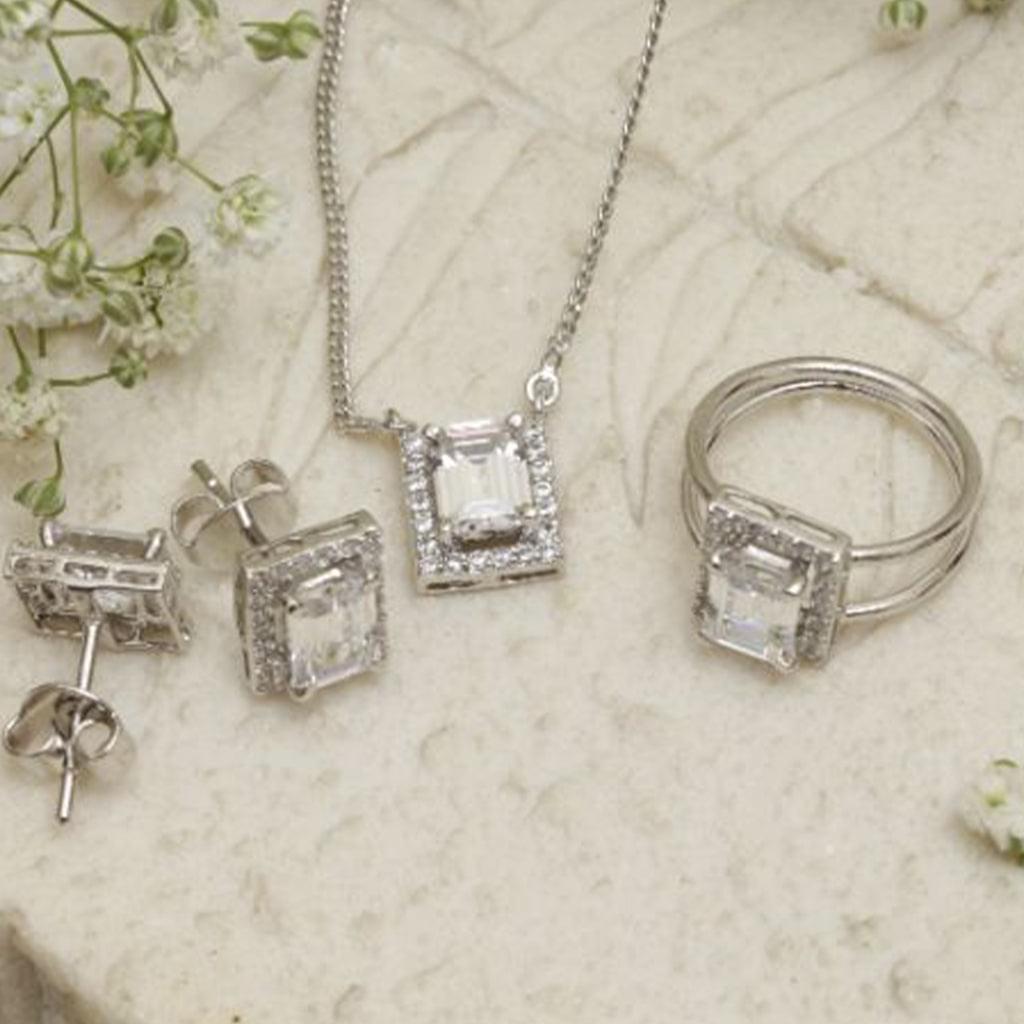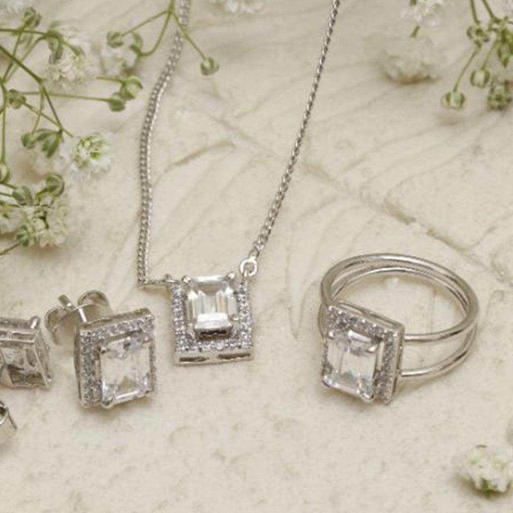 Encrusted with a baguette cut zircon center piece, White Hathi’s Baguette Pendant set is elegant, chic and minimal, just what you need for your daily wear or even formal attire.