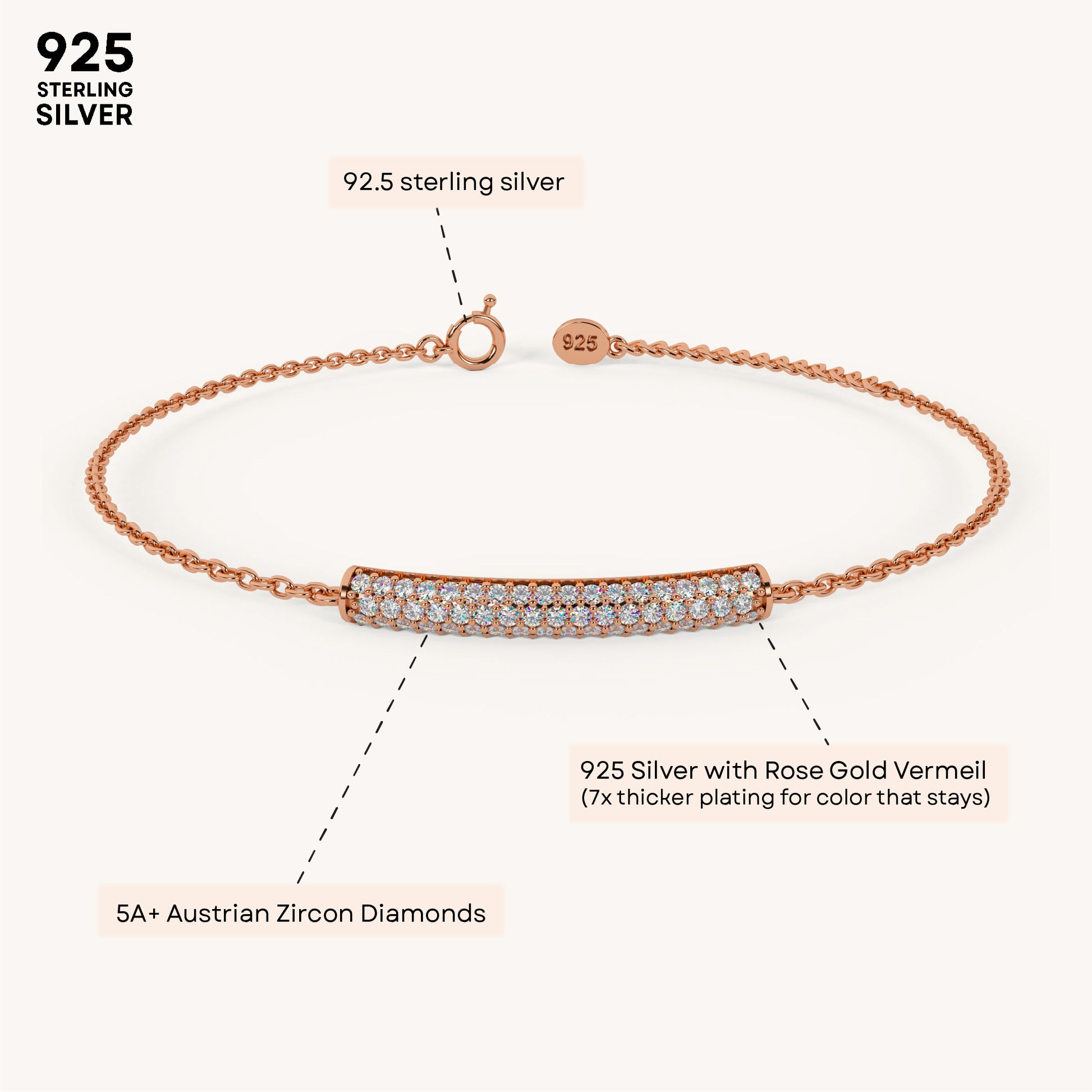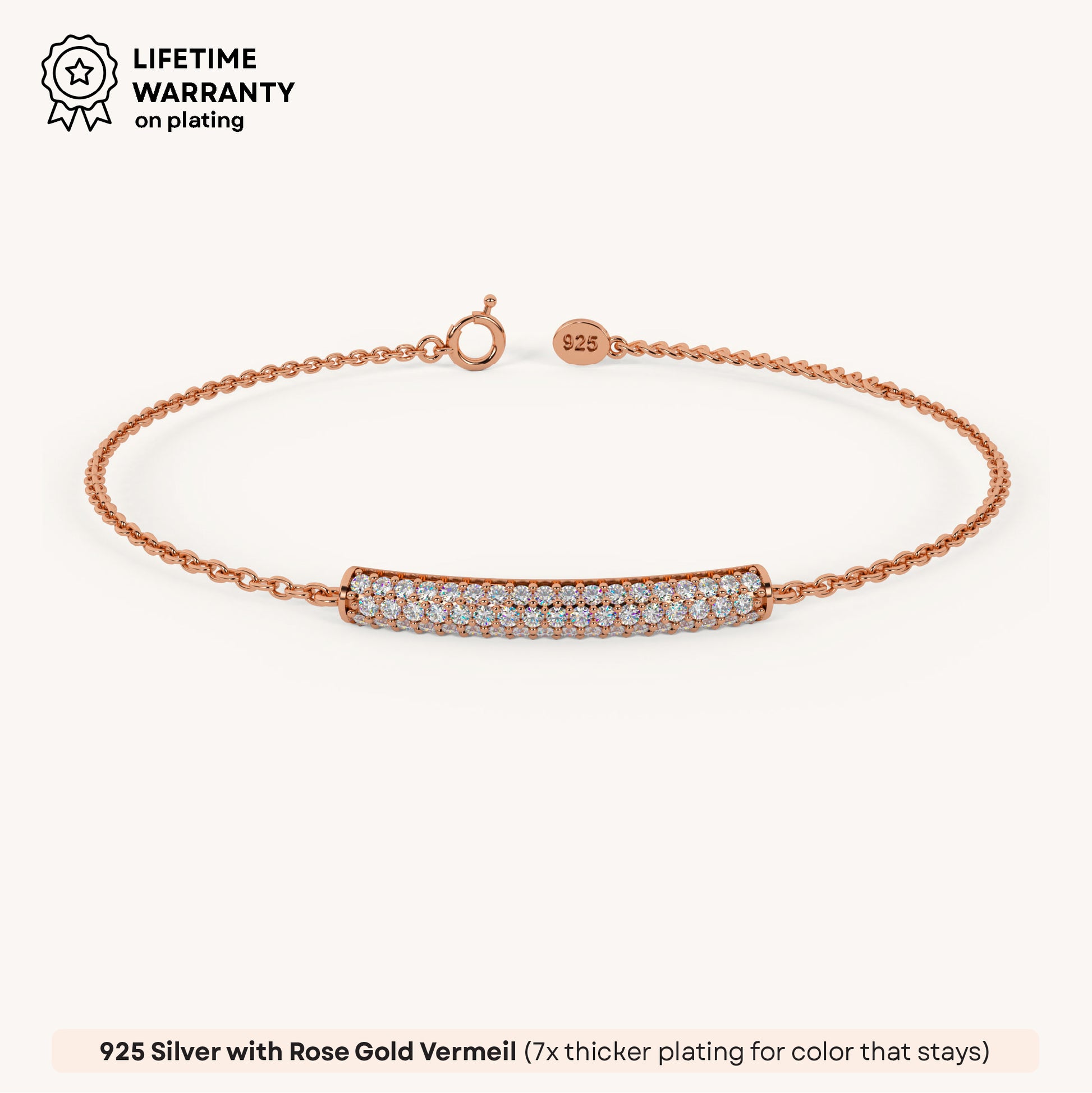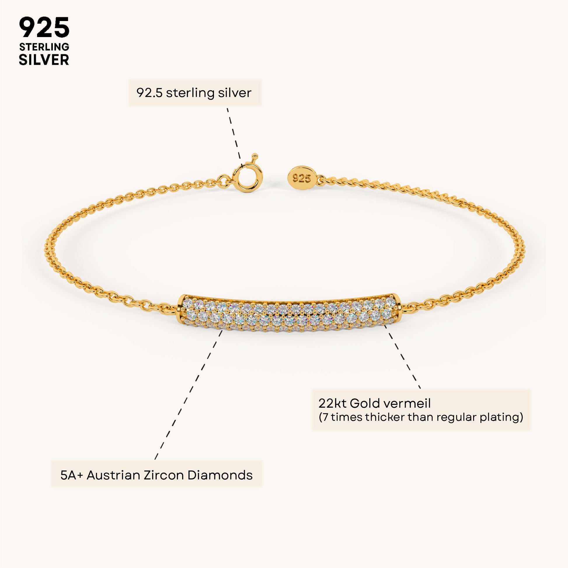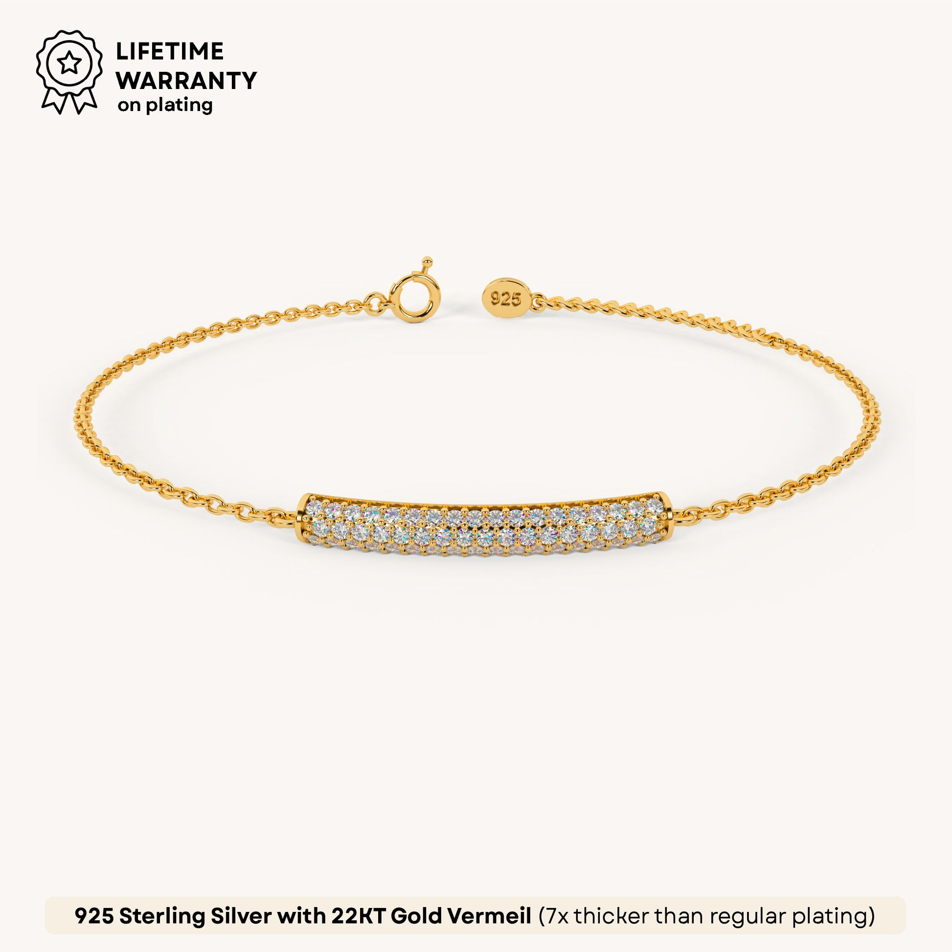 Shine loud with this Bling bar bracelet—pure ✨ energy on your wrist. 92.5 Sterling Silver, plated in 22k gold vermeil with 7x thicker coating & iced with 5A+ Austrian Zircon diamonds.
