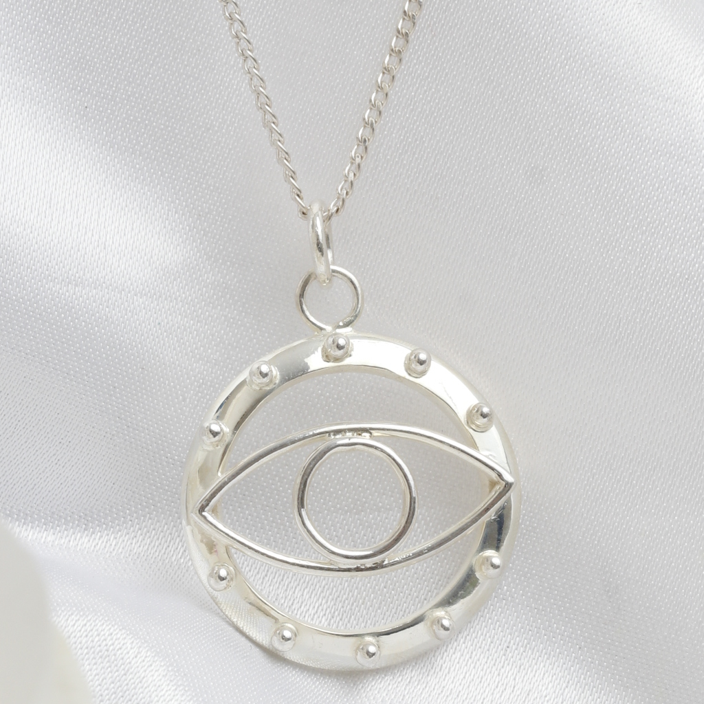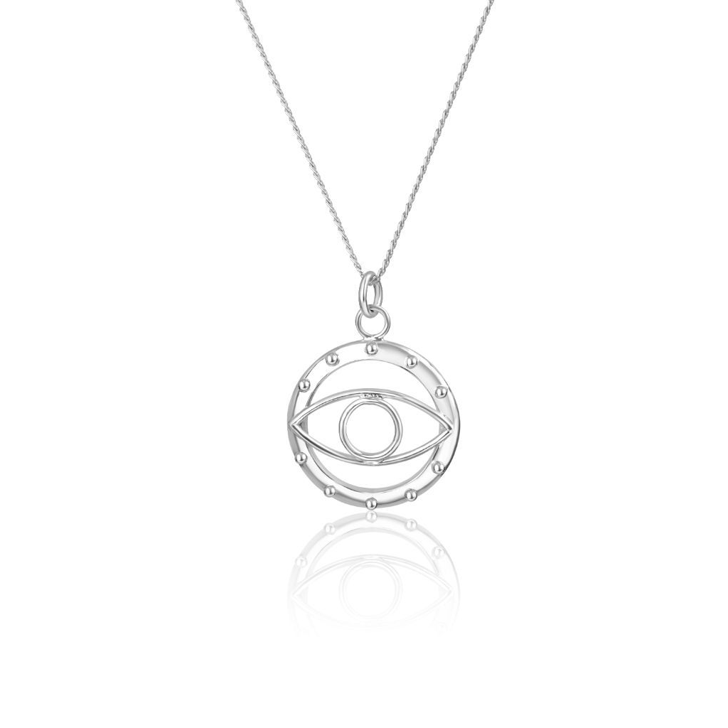 INSPIRATION: The Claire Necklace has its muse as the classic evil eye and the contemporary charm of silver jewelry.