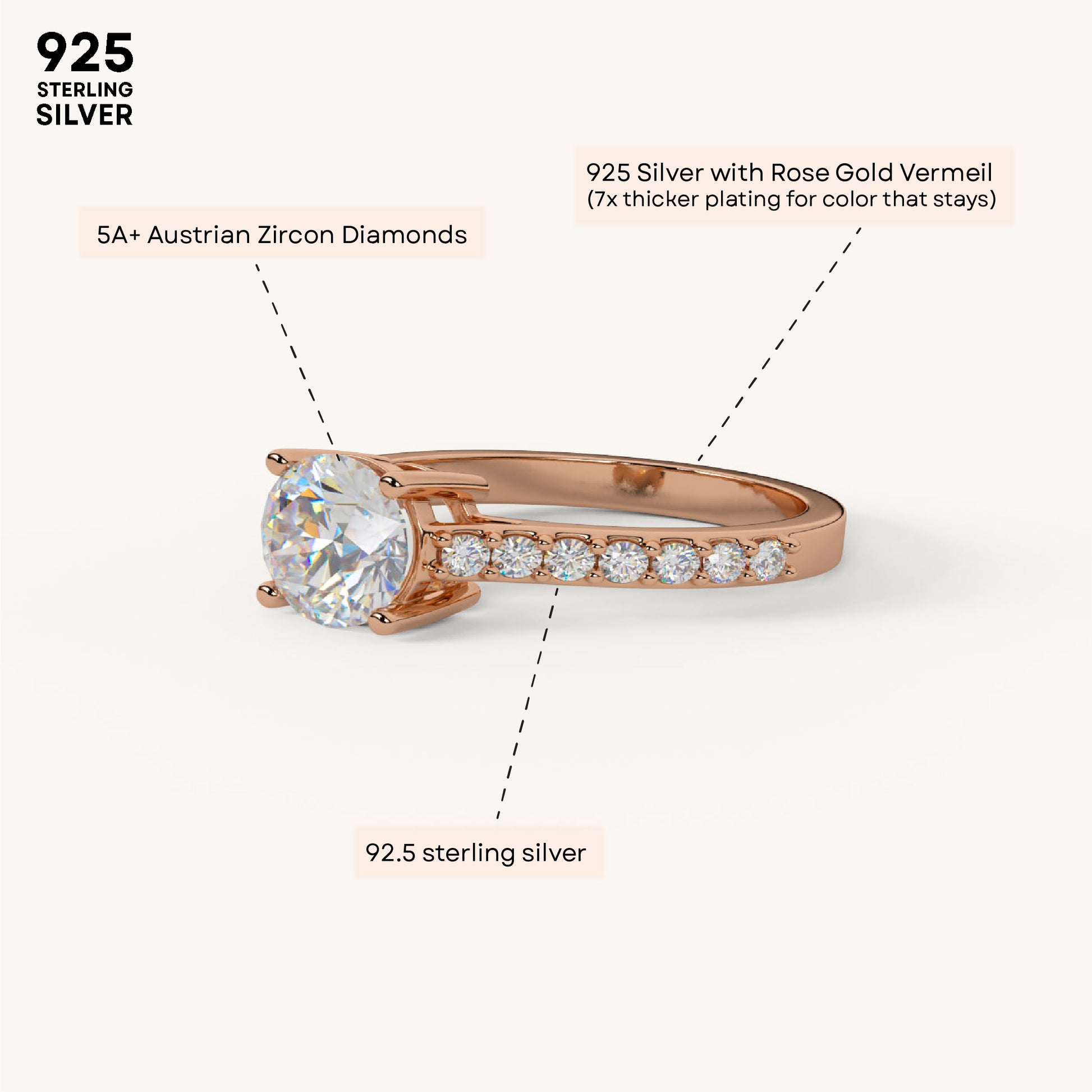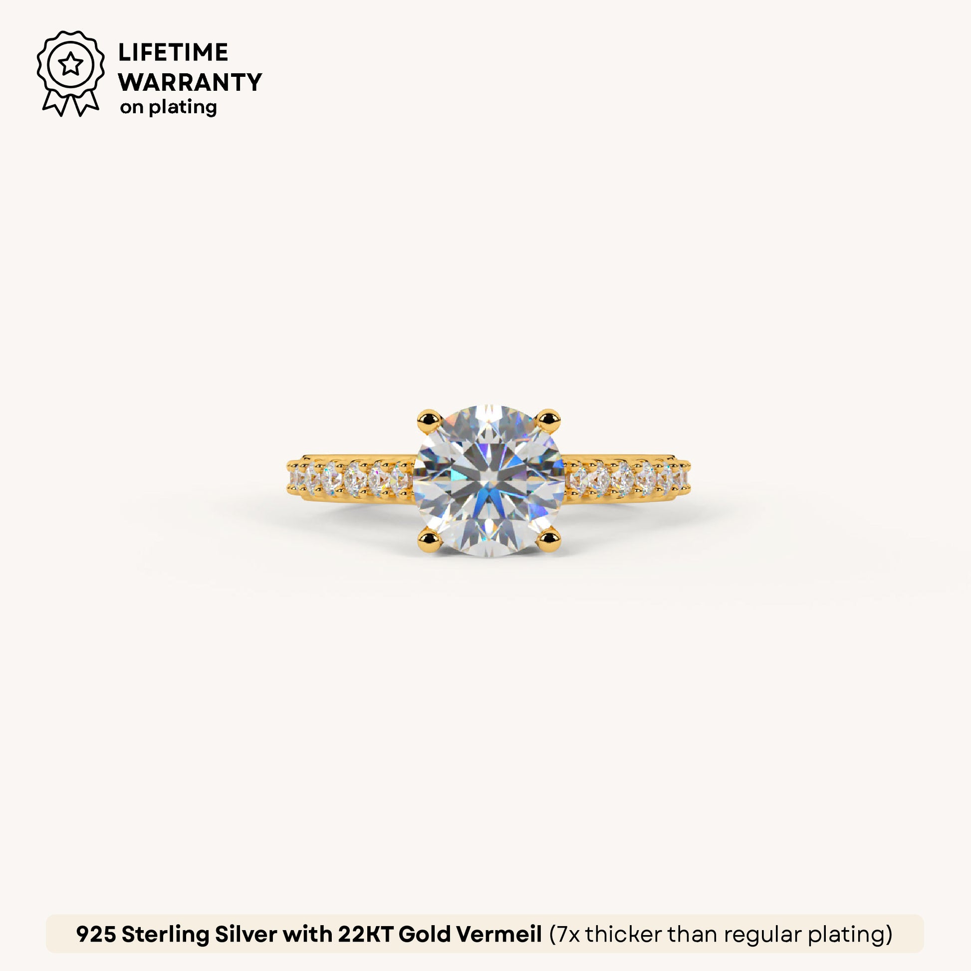 Straight-up icon vibes 💍 This solitaire stunner is timeless. Made in 92.5 Sterling Silver, drenched in 22k gold vermeil with 7x thicker coating, and iced with 5A+ Austrian Zircon diamonds for that mega sparkle.