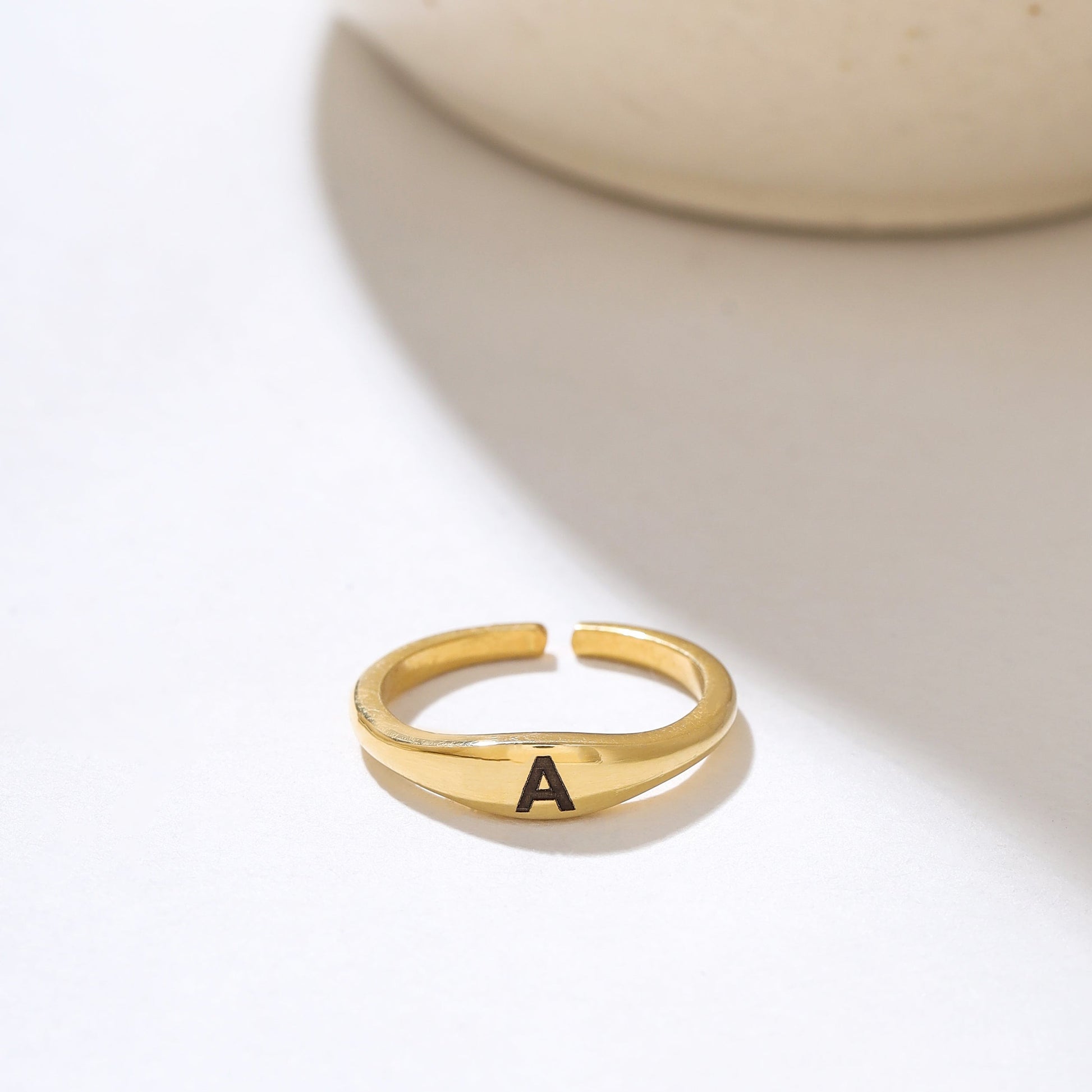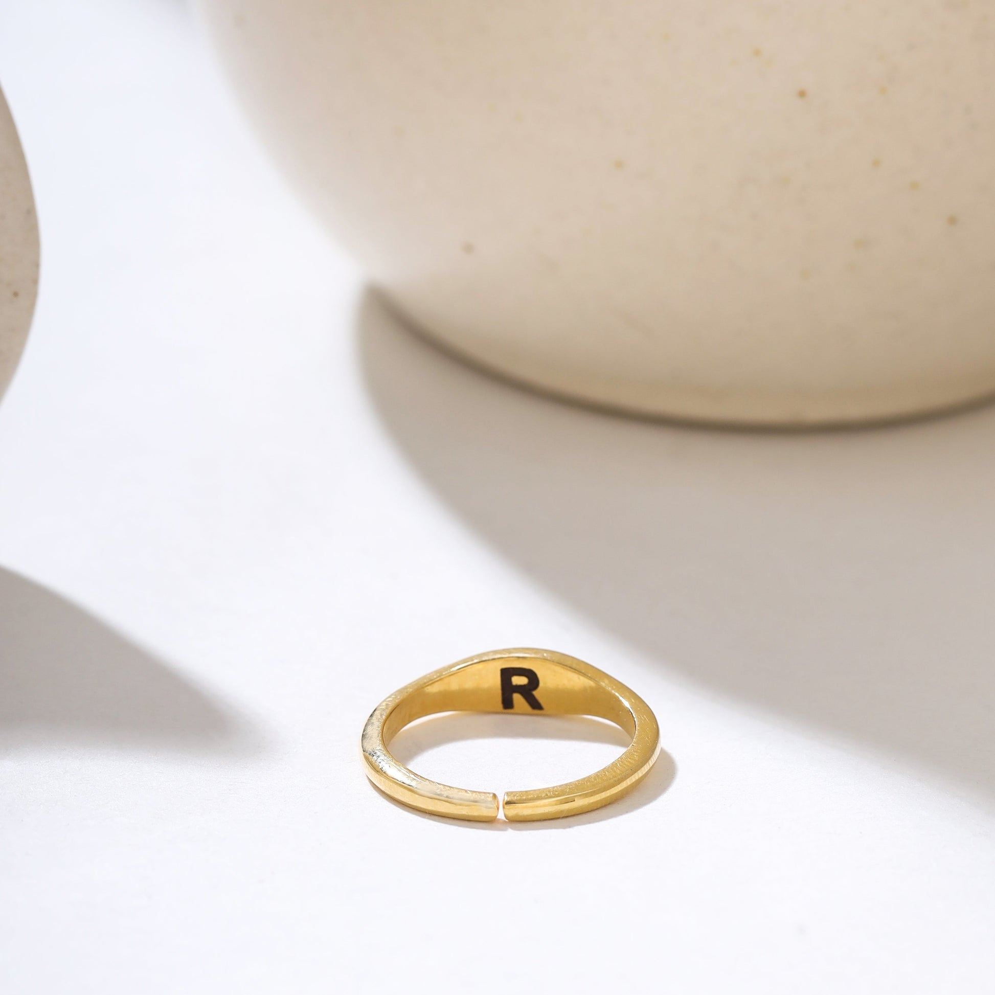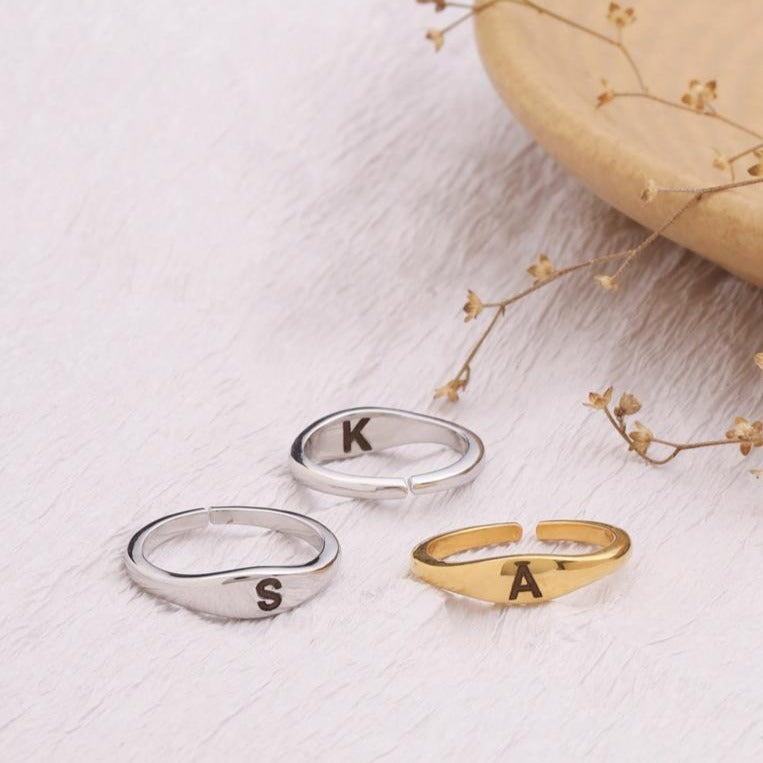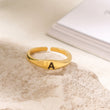 Cherish your connection with a double initial ring, intricately crafted in 92.5 sterling silver plated with 18k gold Vermeil. Personalize both inside and outside with initials, symbolizing a heartfelt connection, making it a meaningful and stylish expression of love.
