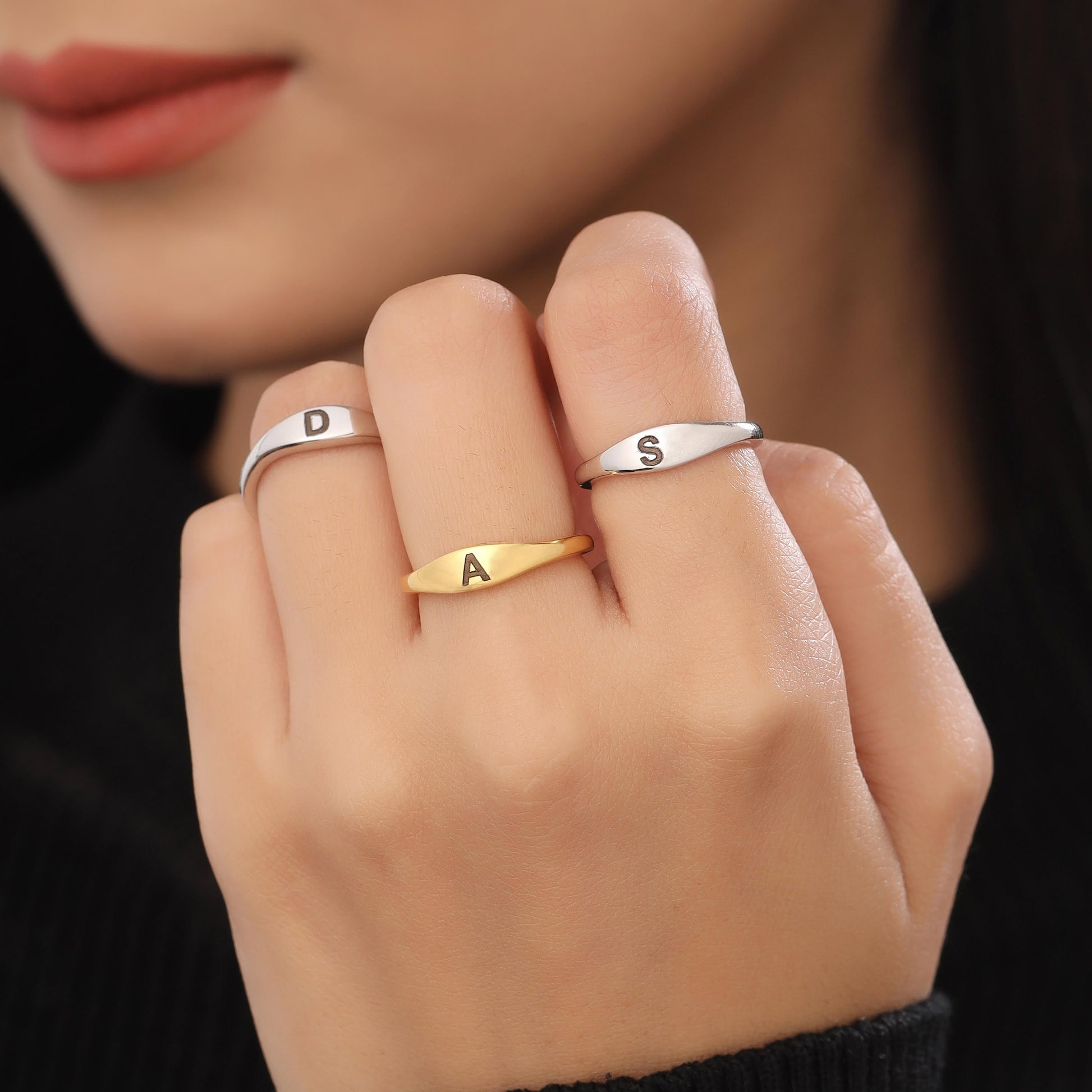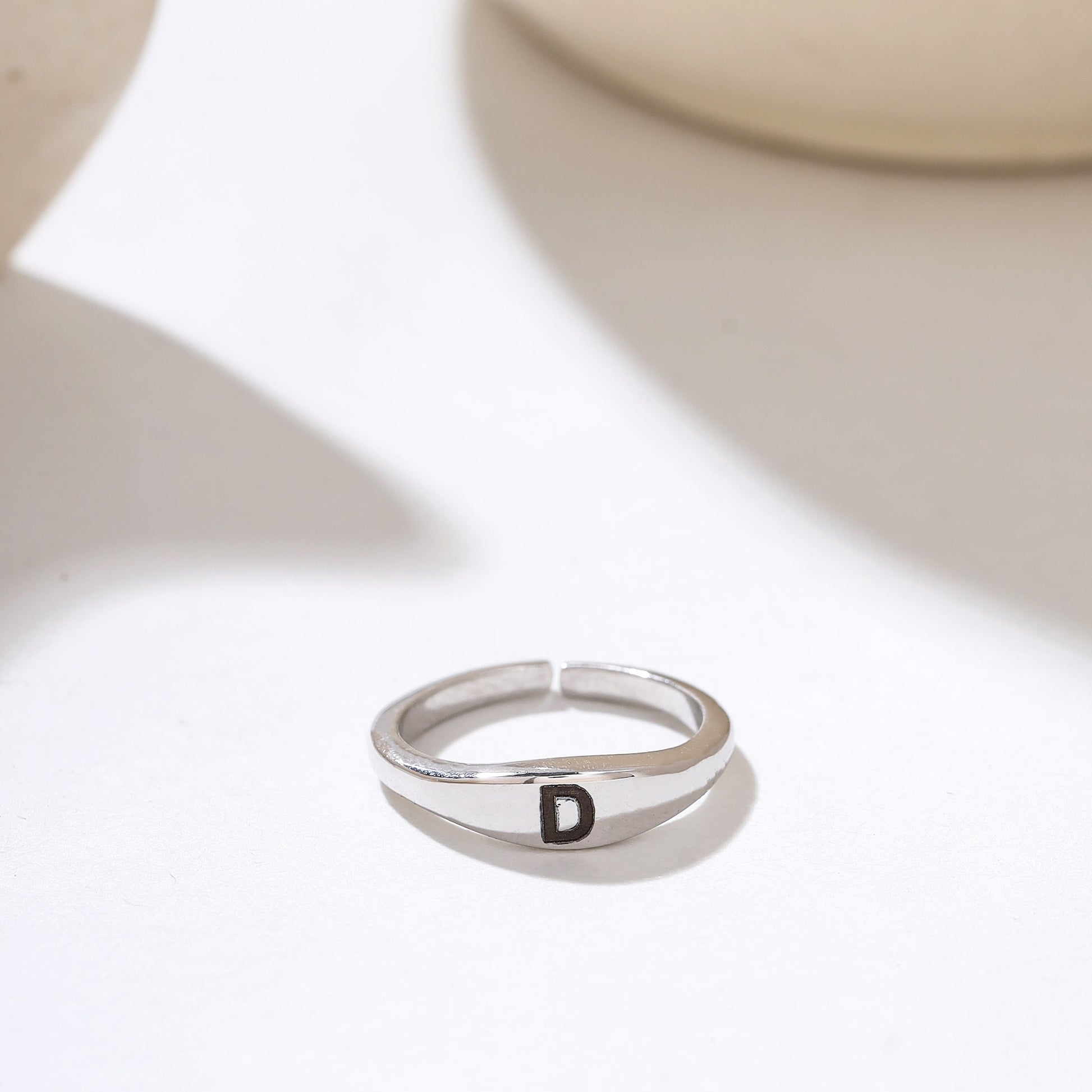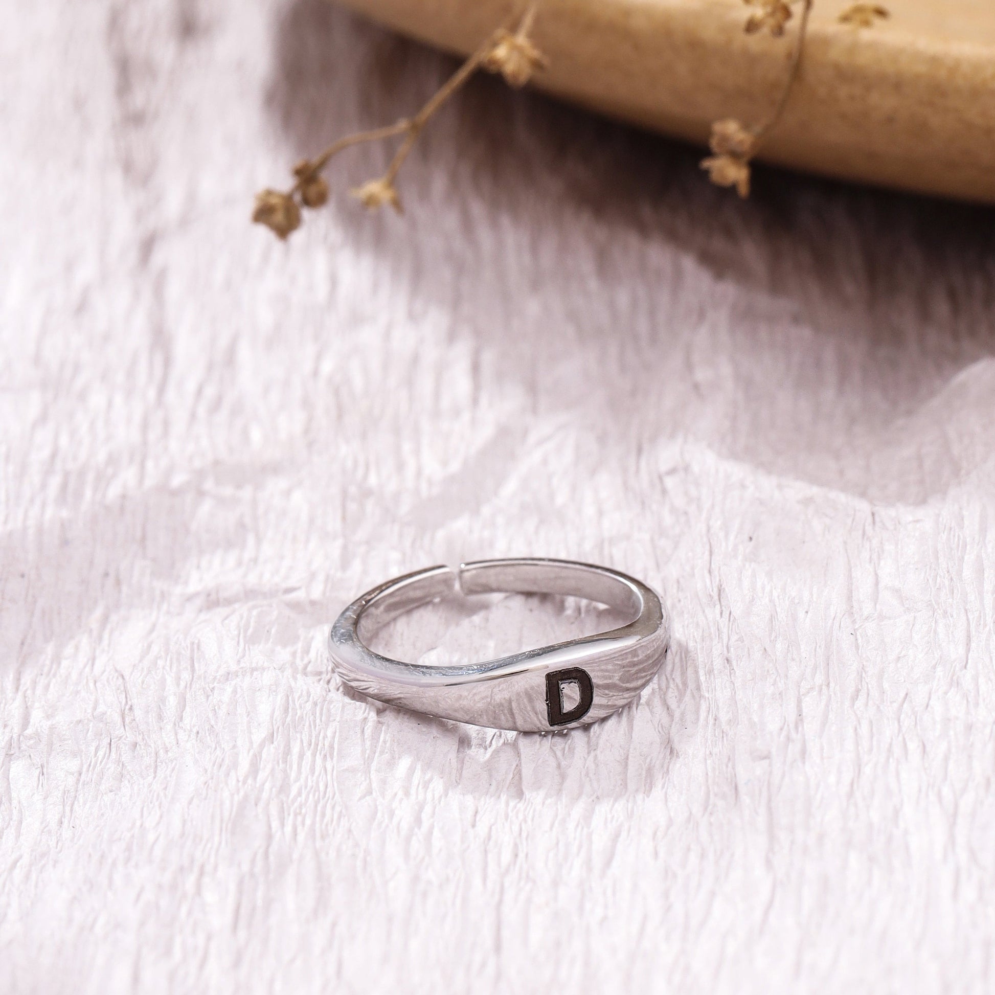 Cherish your connection with a double initial ring, intricately crafted in 92.5 sterling silver plated with 18k gold Vermeil. Personalize both inside and outside with initials, symbolizing a heartfelt connection, making it a meaningful and stylish expression of love.