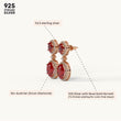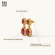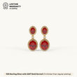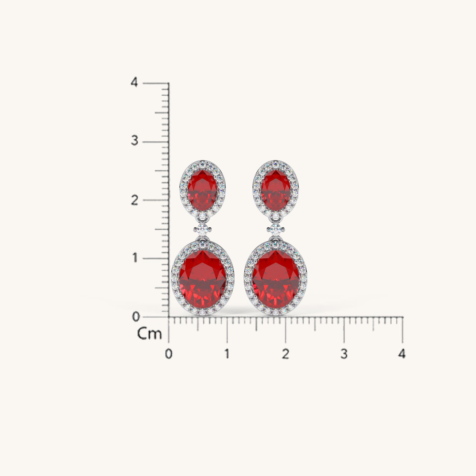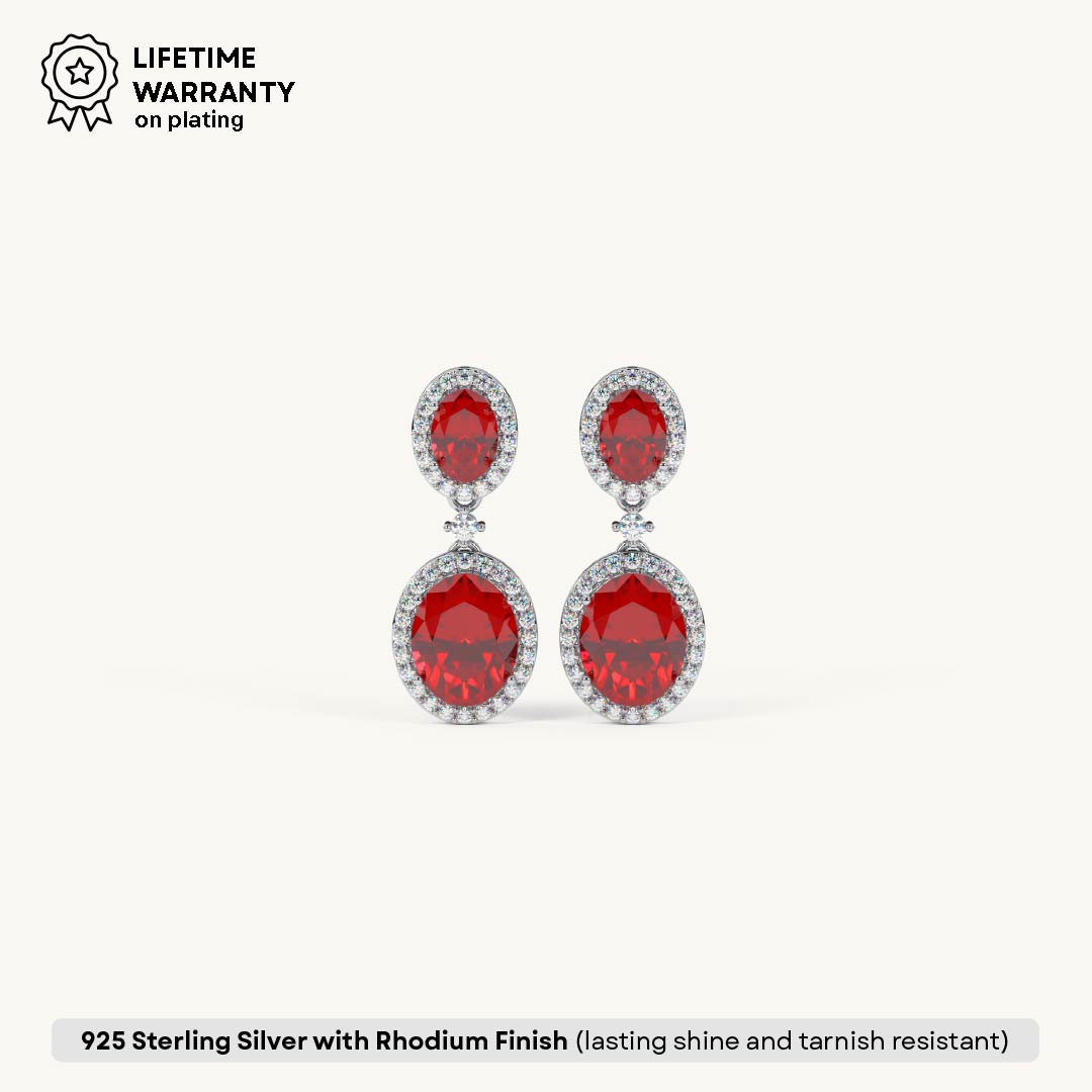 Make a statement with the opulent Double Ruby Halo Dangler earrings. Crafted from genuine 92.5 Sterling Silver, these earrings feature two rich, oval-cut ruby-red stones, each surrounded by a dazzling diamond halo. A luxurious 22kt Gold Vermeil coating provides a rich and lasting finish with a 7x thicker coating than regular plating. The brilliant accent stones are premium 5A+ Austrian Zircon diamonds, offering exceptional sparkle and dramatic elegance.