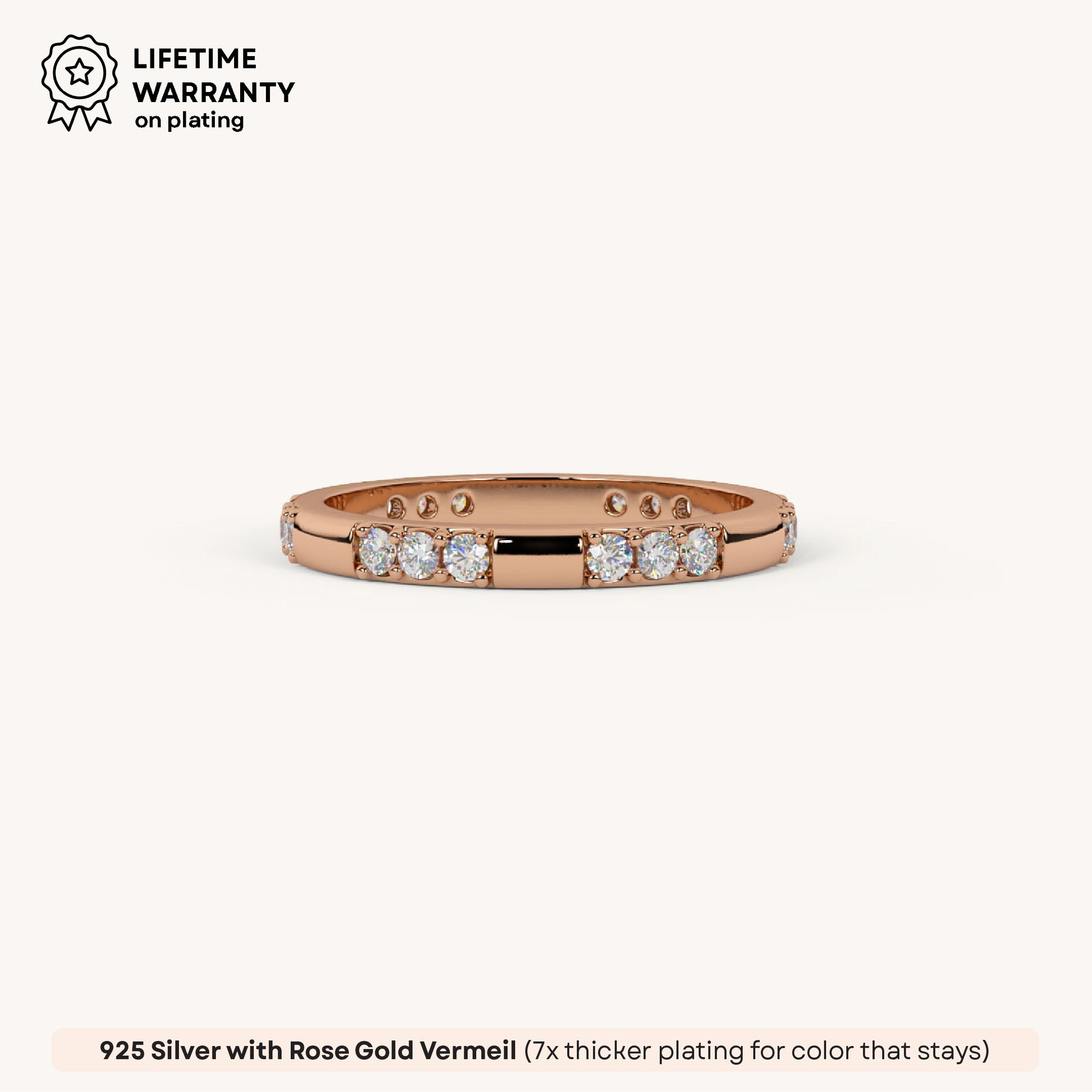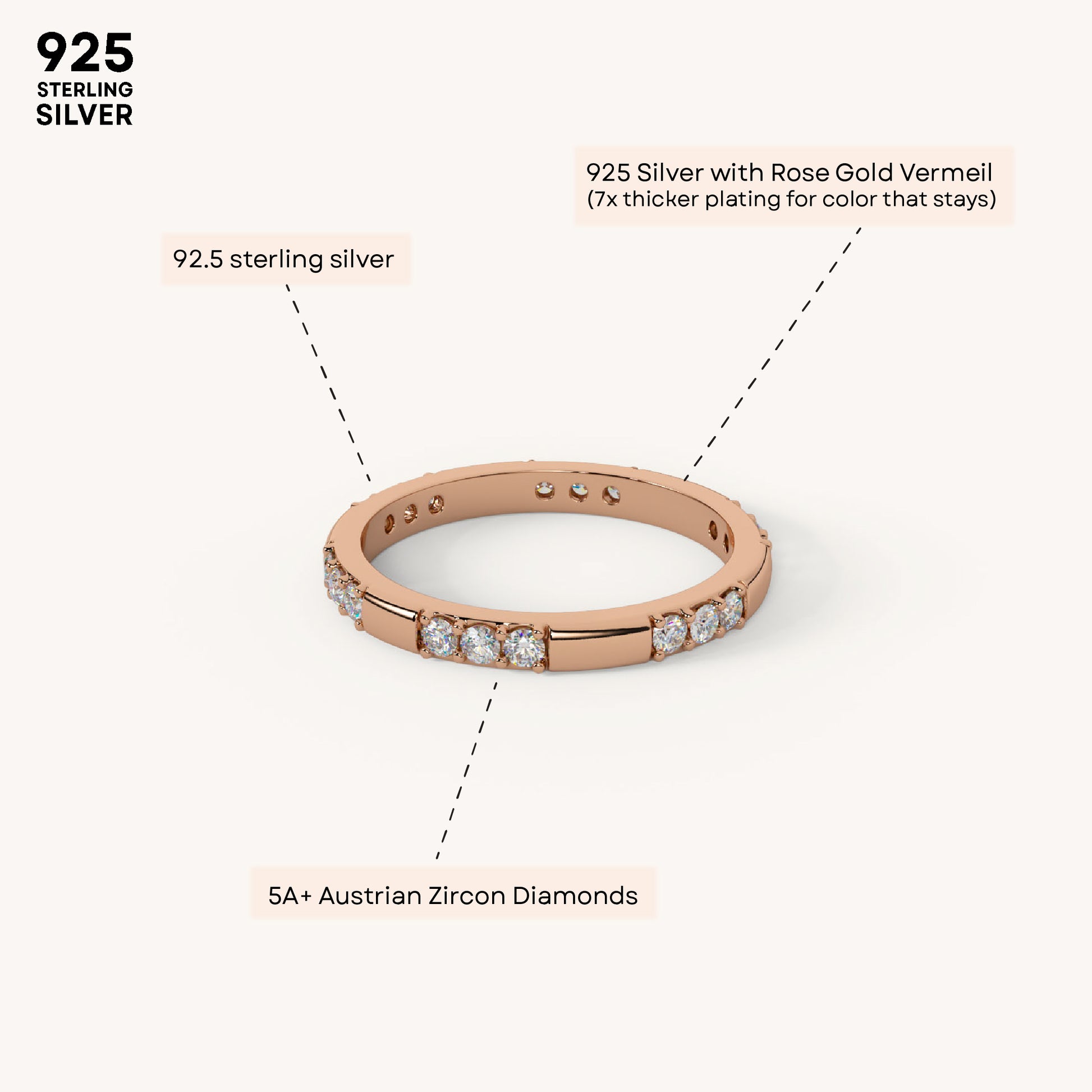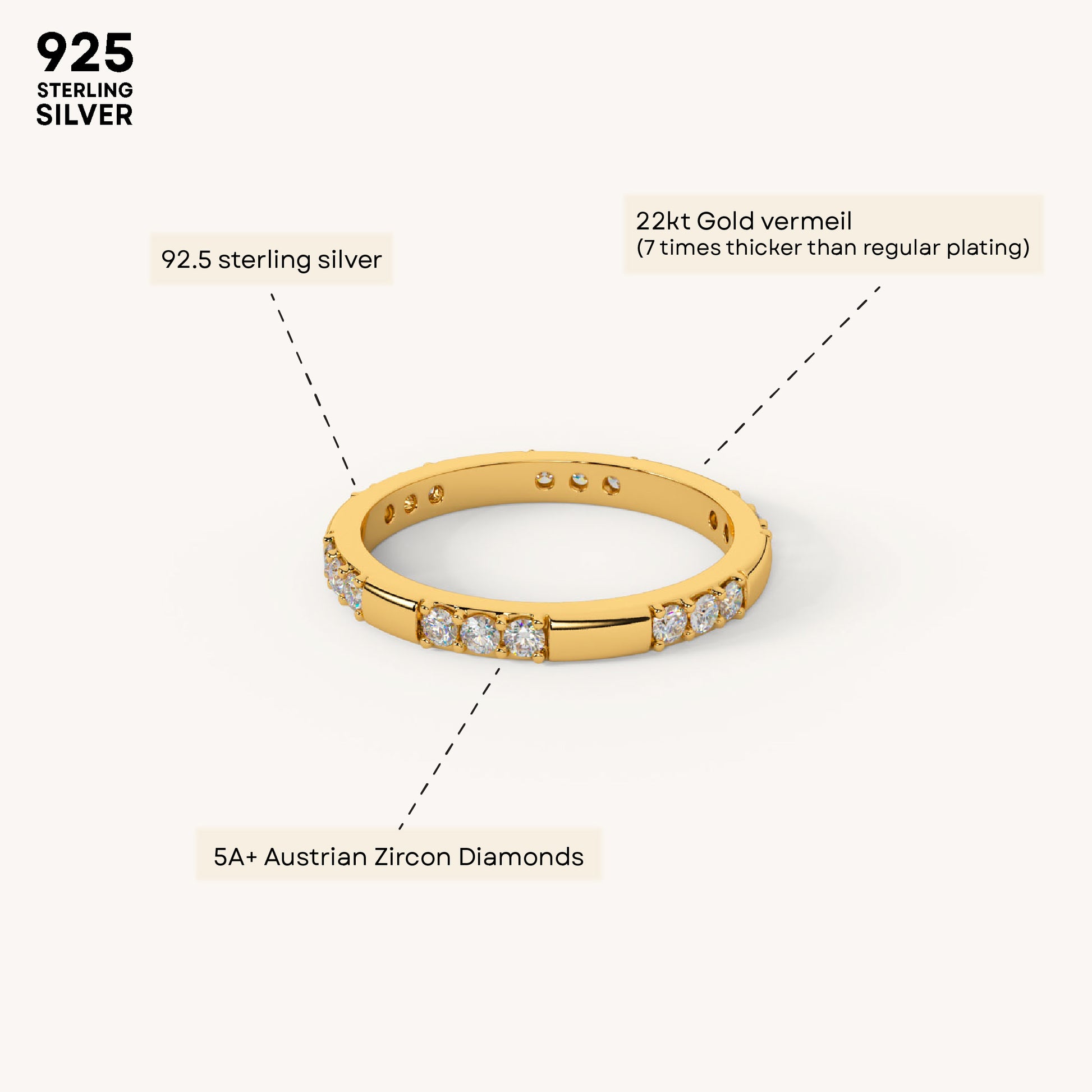 Sleek, minimal, and twinkling just right—this elegant band is your daily sparkle fix. Crafted in 92.5 Sterling Silver, finished with 22k Gold Vermeil with 7x thicker coating and studded with best 5A+ Austrian Zircon diamonds.