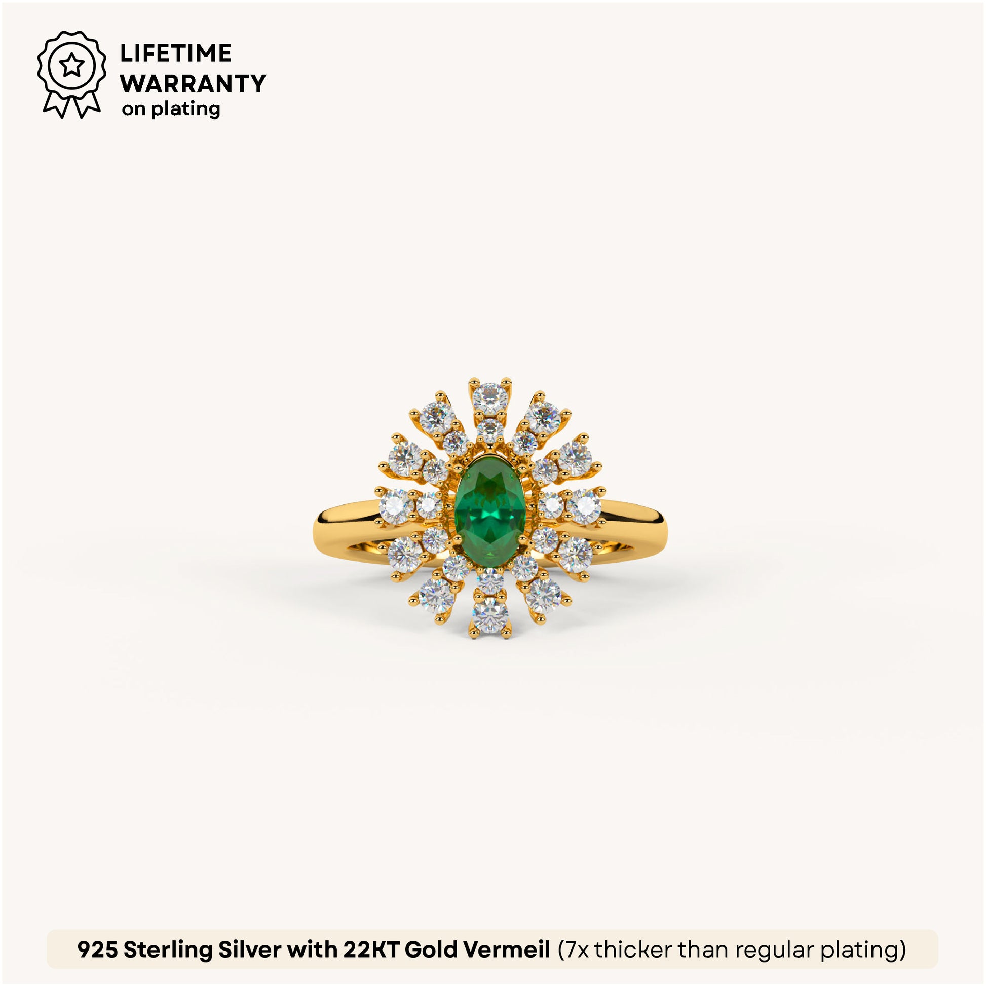 Major main character energy 💚 This bold bloom ring turns every look into luxury! Crafted in 92.5 Sterling Silver, finished in 22k gold vermeil with 7x thicker coating, and studded with 5A+ Austrian Zircon diamonds.
