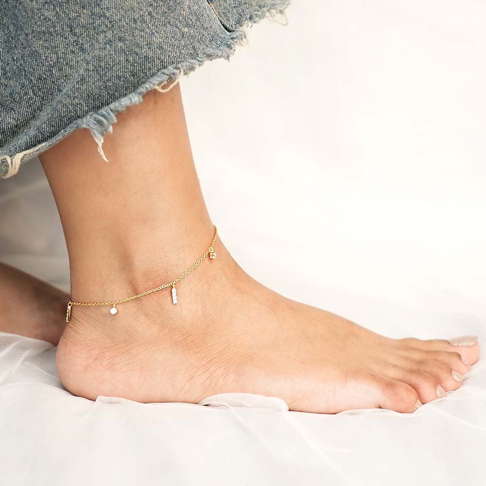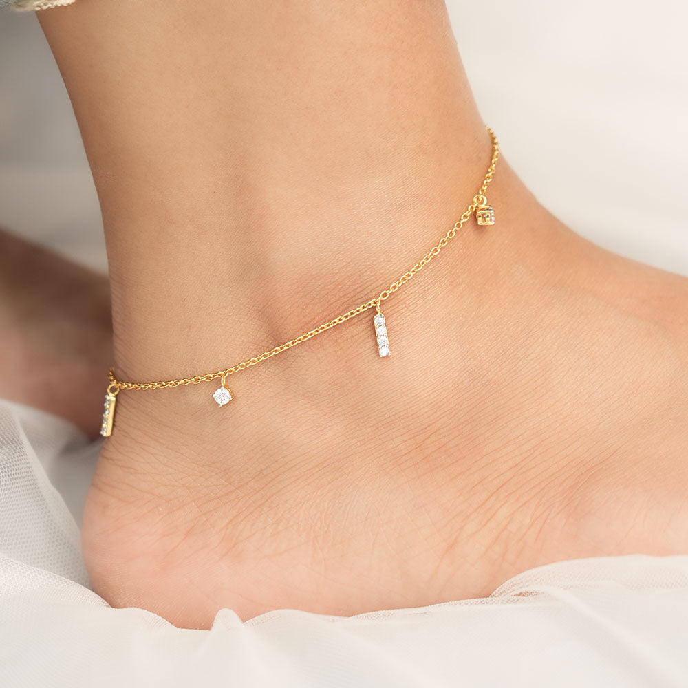 Chic, sparkly, and dripping in modern glam—this anklet turns heads with its glimmering charms. Crafted in 92.5 Sterling Silver, finished in 22k Gold Vermeil with 7x thicker coating, and studded with best 5A+ Austrian Zircon diamonds.
