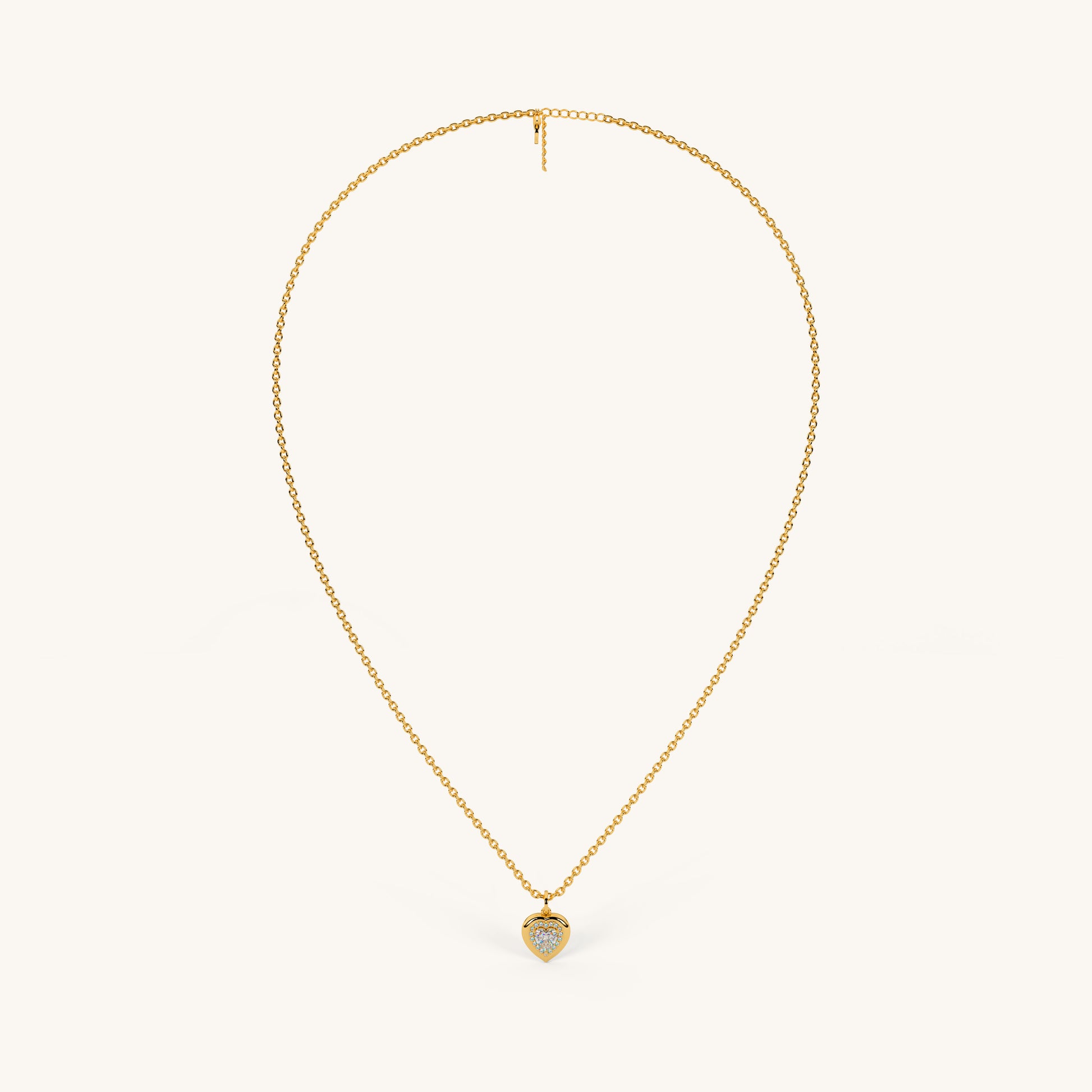 Major heart eyes for this radiant beauty! Glimmer Core stuns with its luxe heart design, plated in 22k gold vermeil with 7x thicker coating, crafted in 92.5 Sterling Silver and studded with best 5A+ Austrian Zircon diamonds.