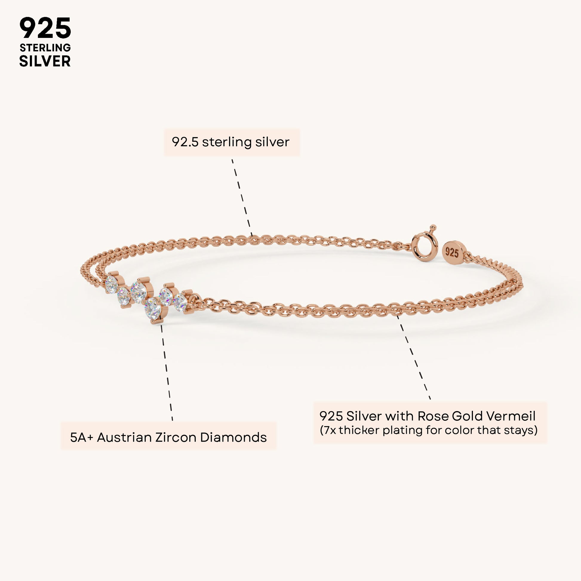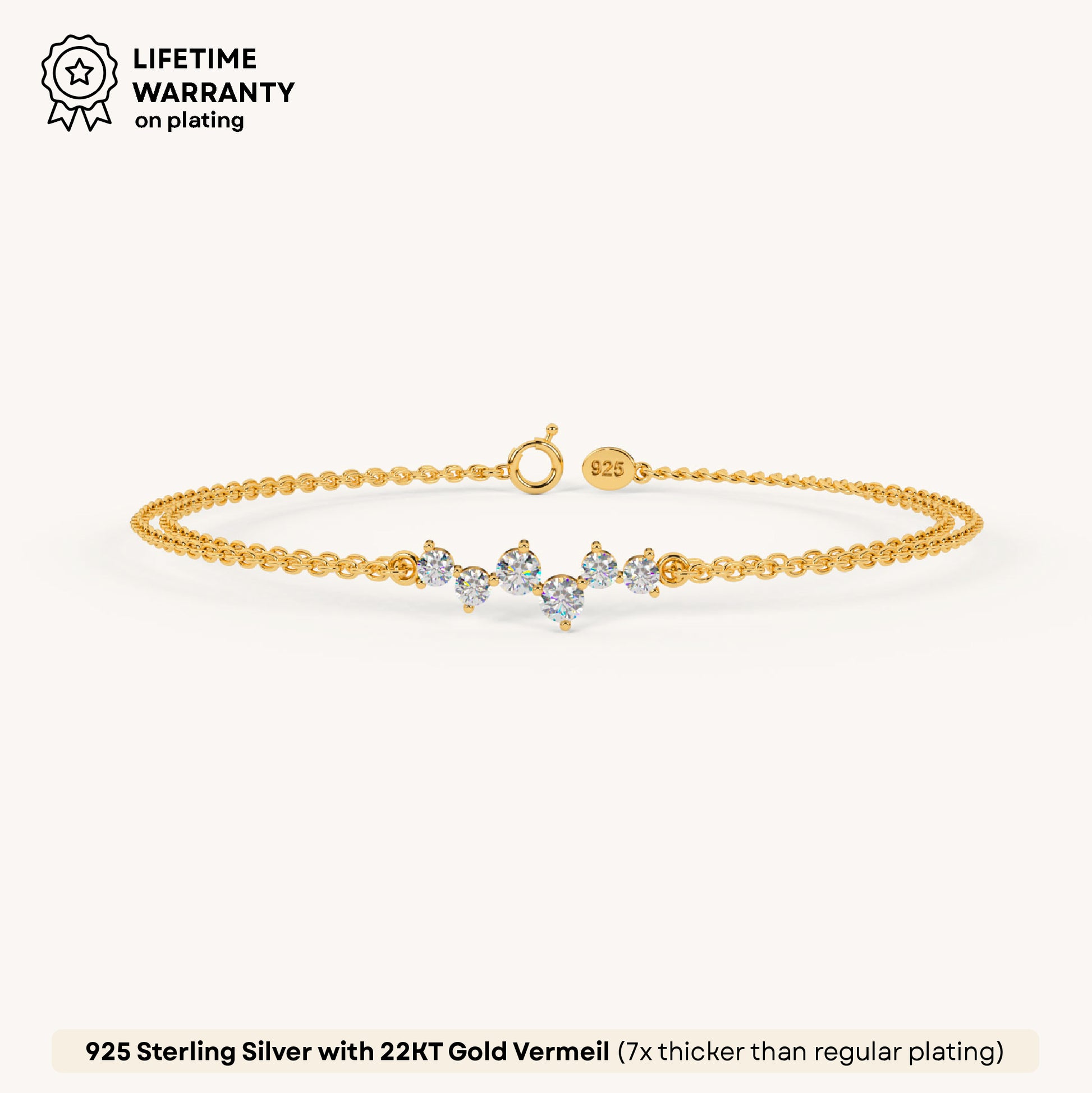 A lil glam never hurt nobody! Glitz Diamond Bracelet shines bright with 5A+ Austrian Zircon diamonds, crafted in 92.5 Sterling Silver and plated in 22k Gold Vermeil with 7x thicker coating. Dainty, dreamy, and dripping in sparkle.