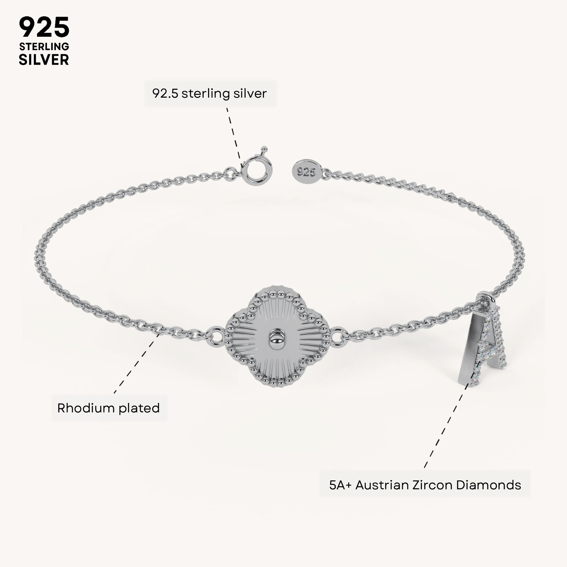 Hope Initial Clover Bracelet in 92.5 Sterling Silver