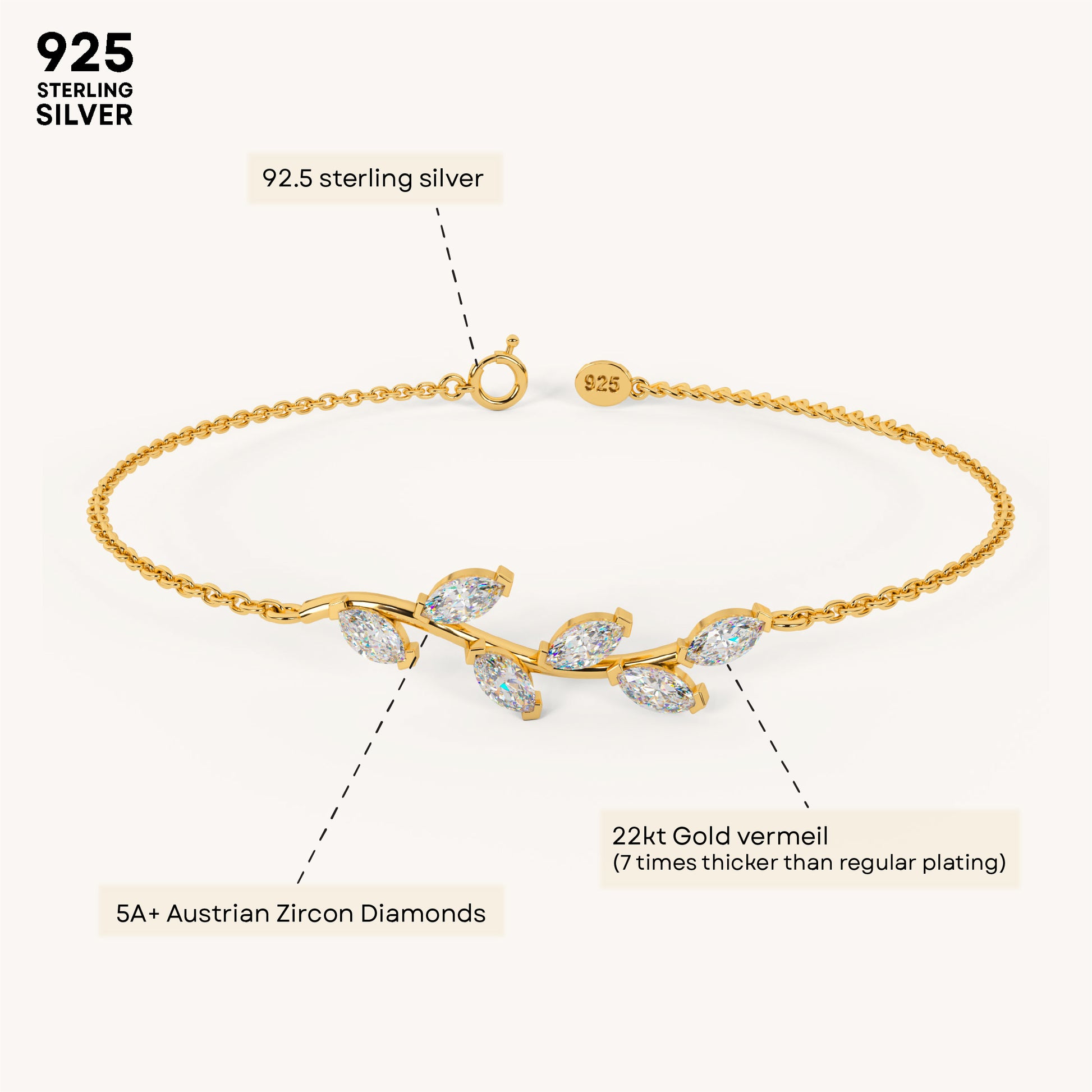 Pure Fairy core vibes! Leaflet Shine wraps your wrist in nature’s glam crafted in 92.5 Sterling Silver, plated in 22k Gold Vermeil, and lit with 5A+ Austrian Zircon diamonds. Ethereal but make it bling!