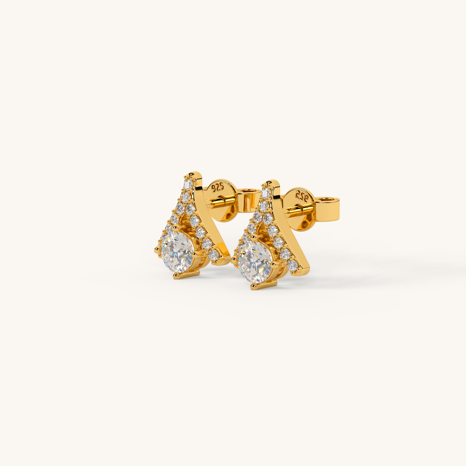 Experience divine geometry with the Meru Diamond Studs, featuring a sacred pyramid structure centered by a single, brilliant 5A+ Austrian Zircon diamond. Meticulously crafted in 92.5 Sterling Silver, luxuriously plated with 22k Gold Vermeil and a 7x thicker coating for enduring elegance. A perfect fusion of spiritual symbolism and modern sparkle.