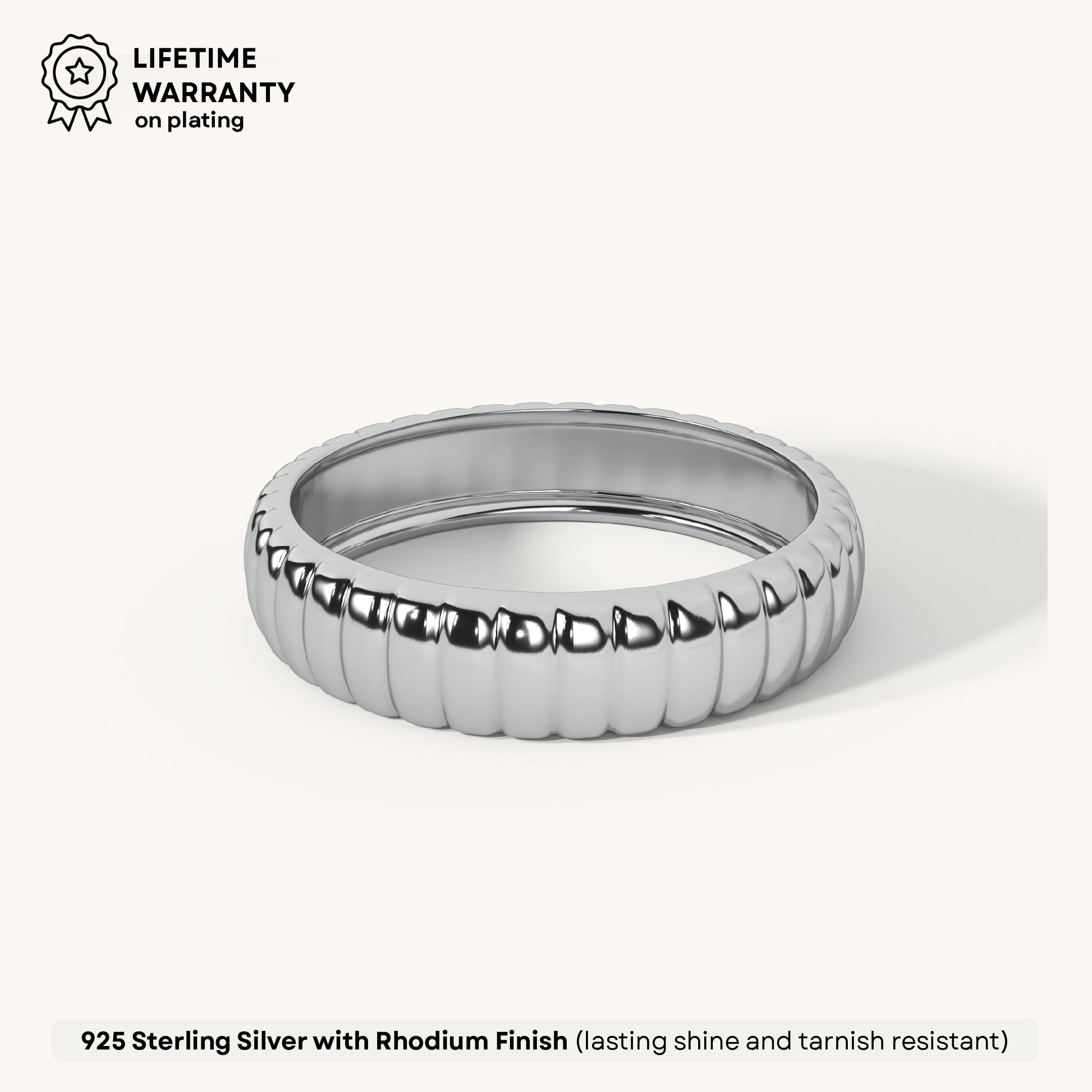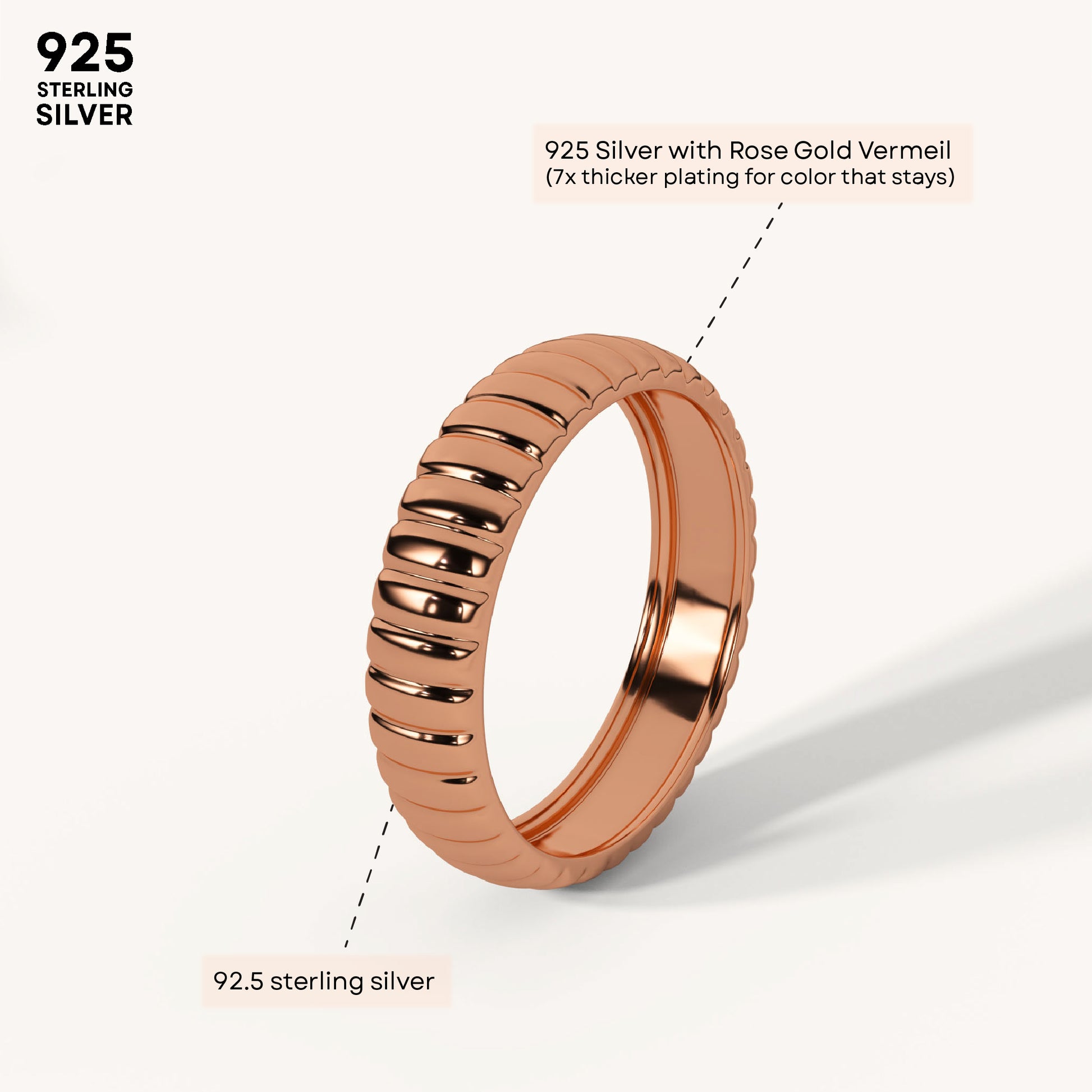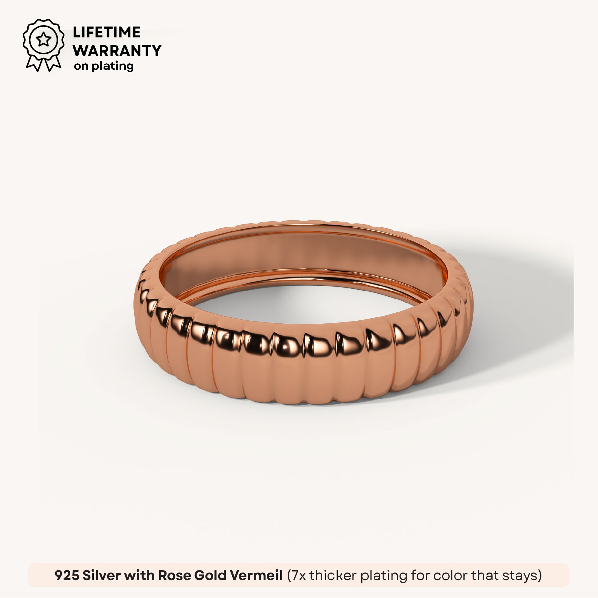 Chunky, sculpted, and totally statement—this ribbed band brings fierce texture to your ring stack. Handcrafted in 92.5 Sterling Silver with 22k Gold Vermeil and 7x thicker coating.
