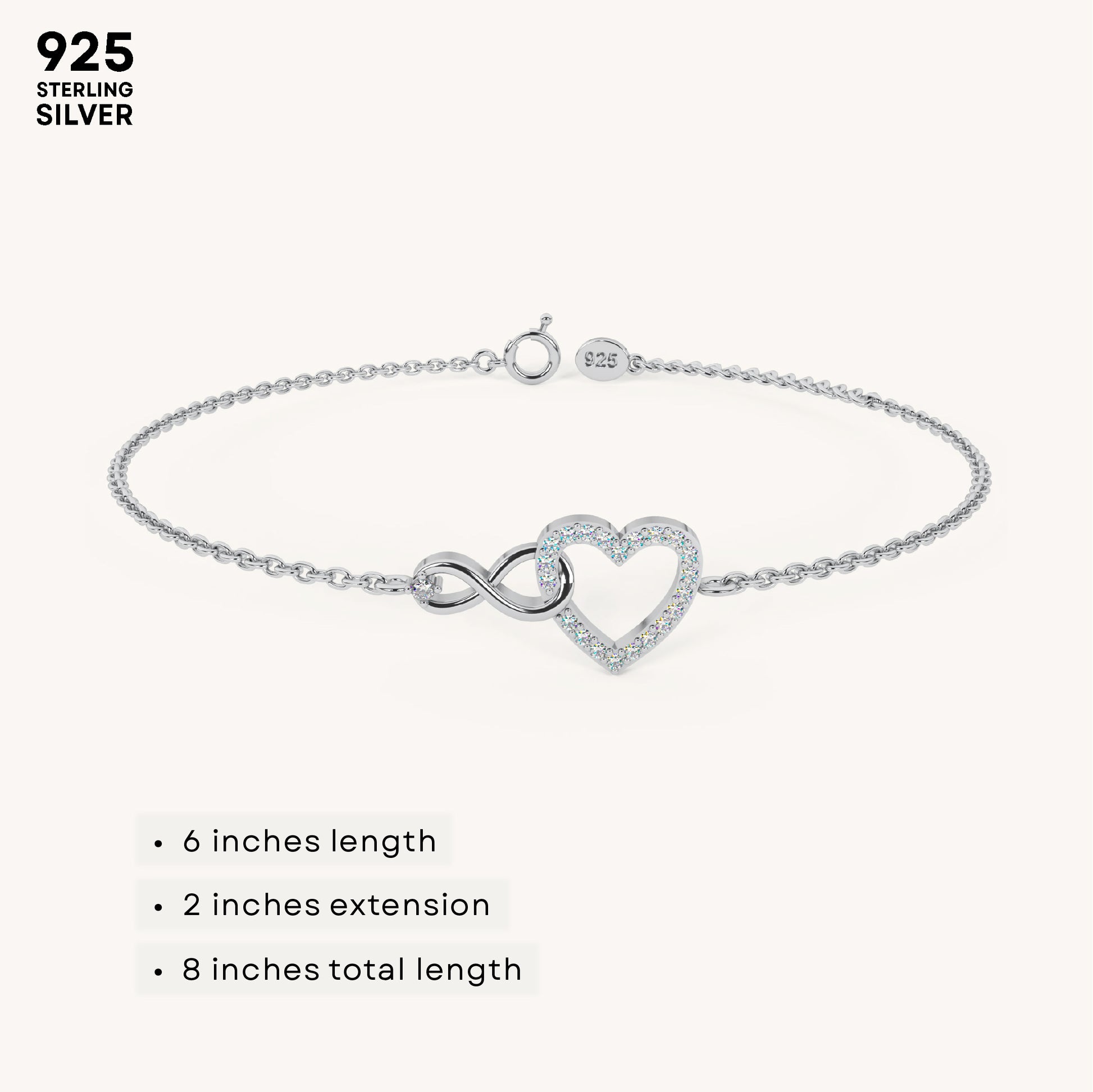 Pure Heart Infinity Bracelet in 92.5 Sterling Silver