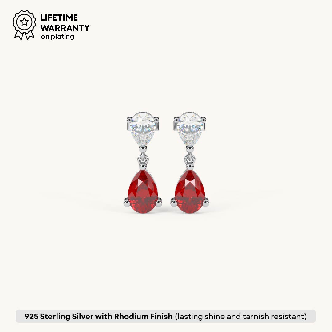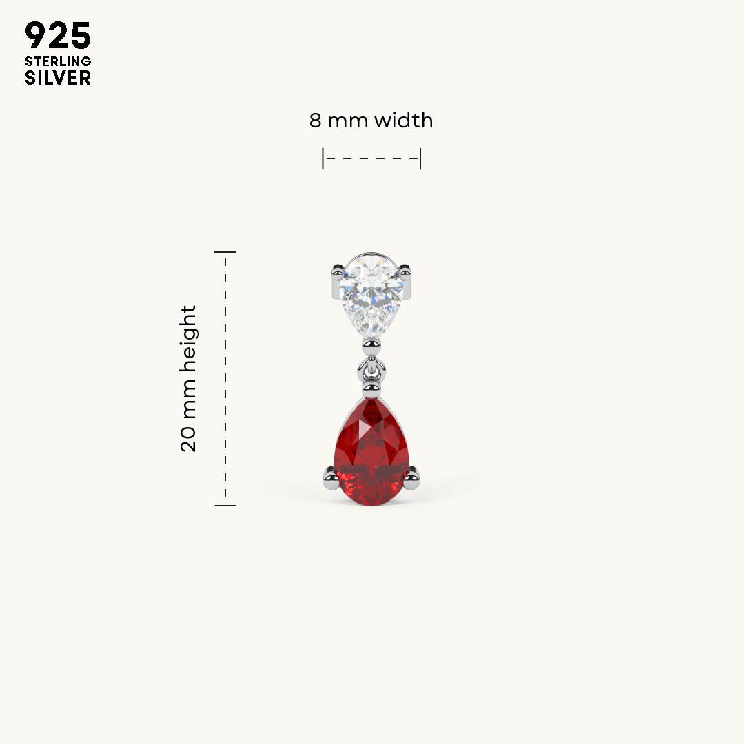 Ruby Pear Drop Dangler in 92.5 Sterling Silver