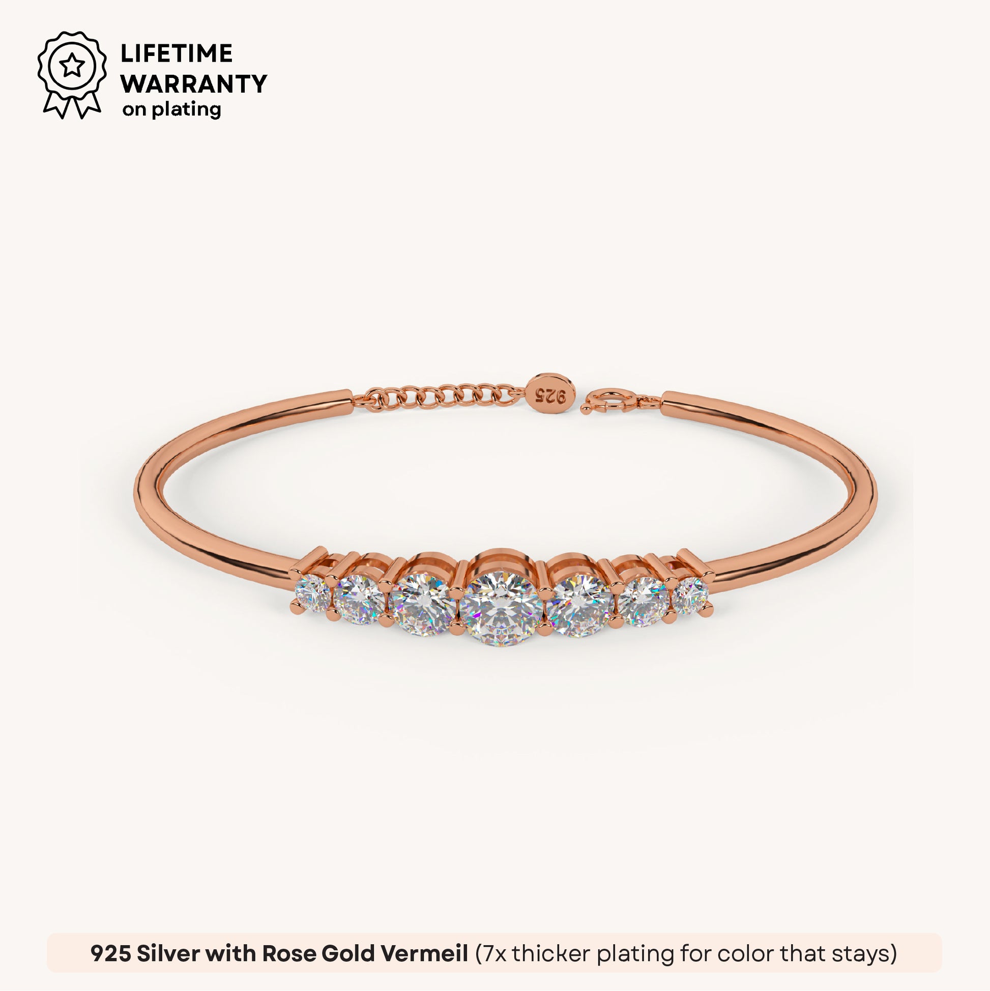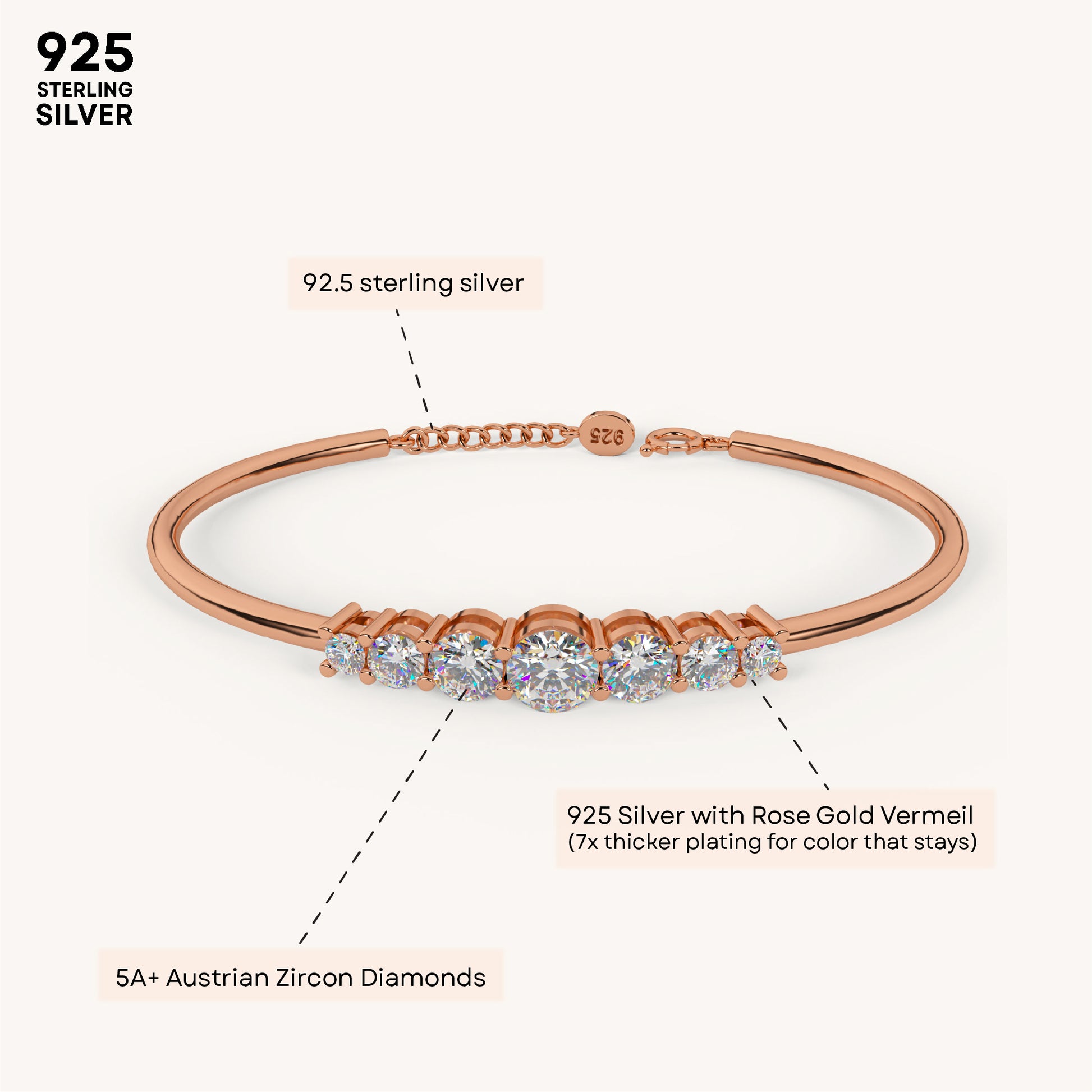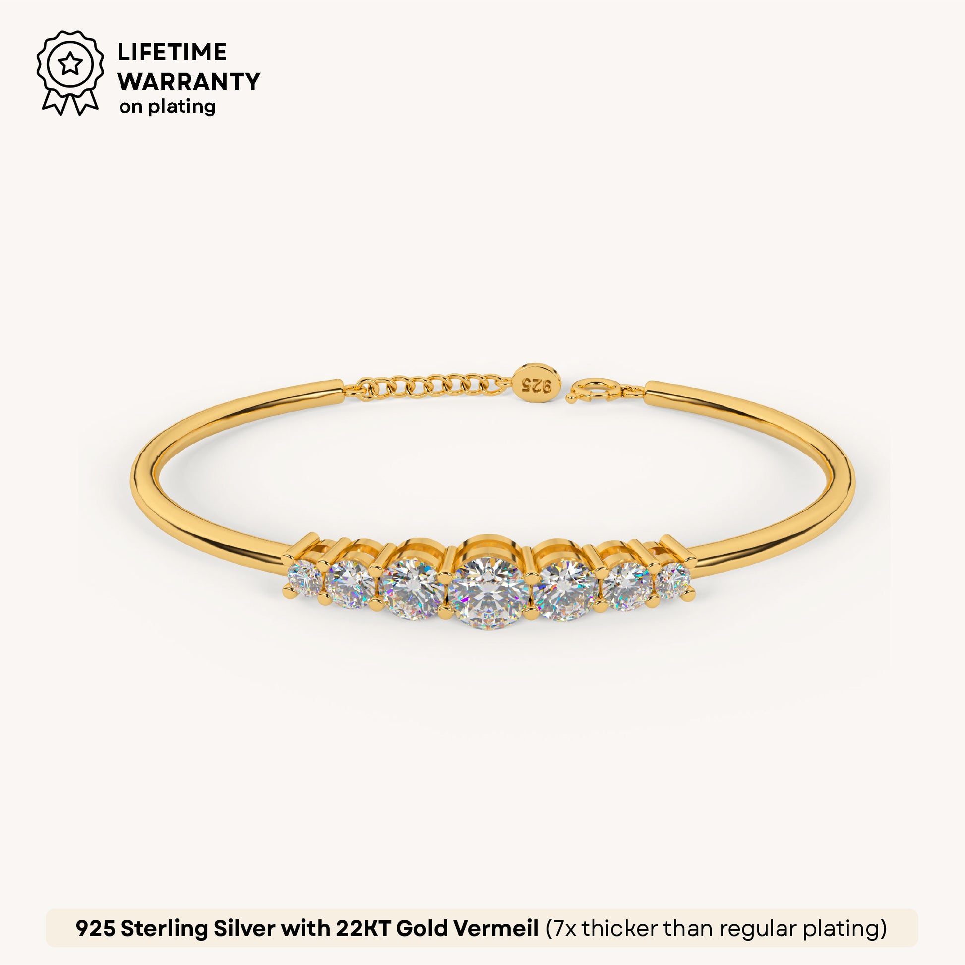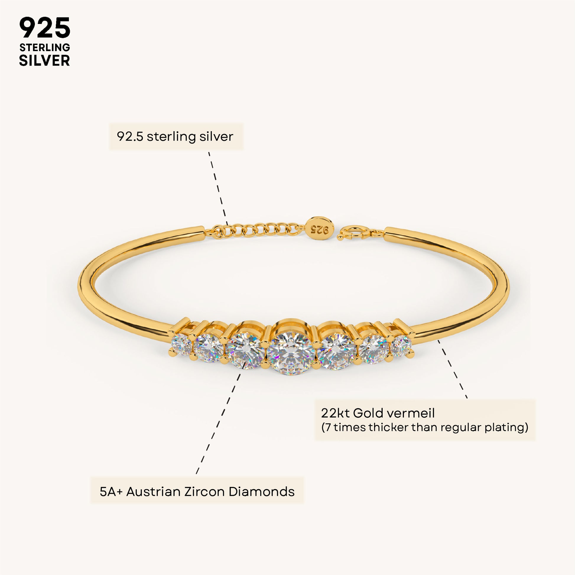 The Seven Radiance" Bracelet features seven dazzling 5A+ Austrian zircon stones set in luxurious 22K gold vermeil over 92.5 sterling silver with 7x thicker coating each symbolizing love, clarity, strength, joy, wisdom, balance, and prosperity.