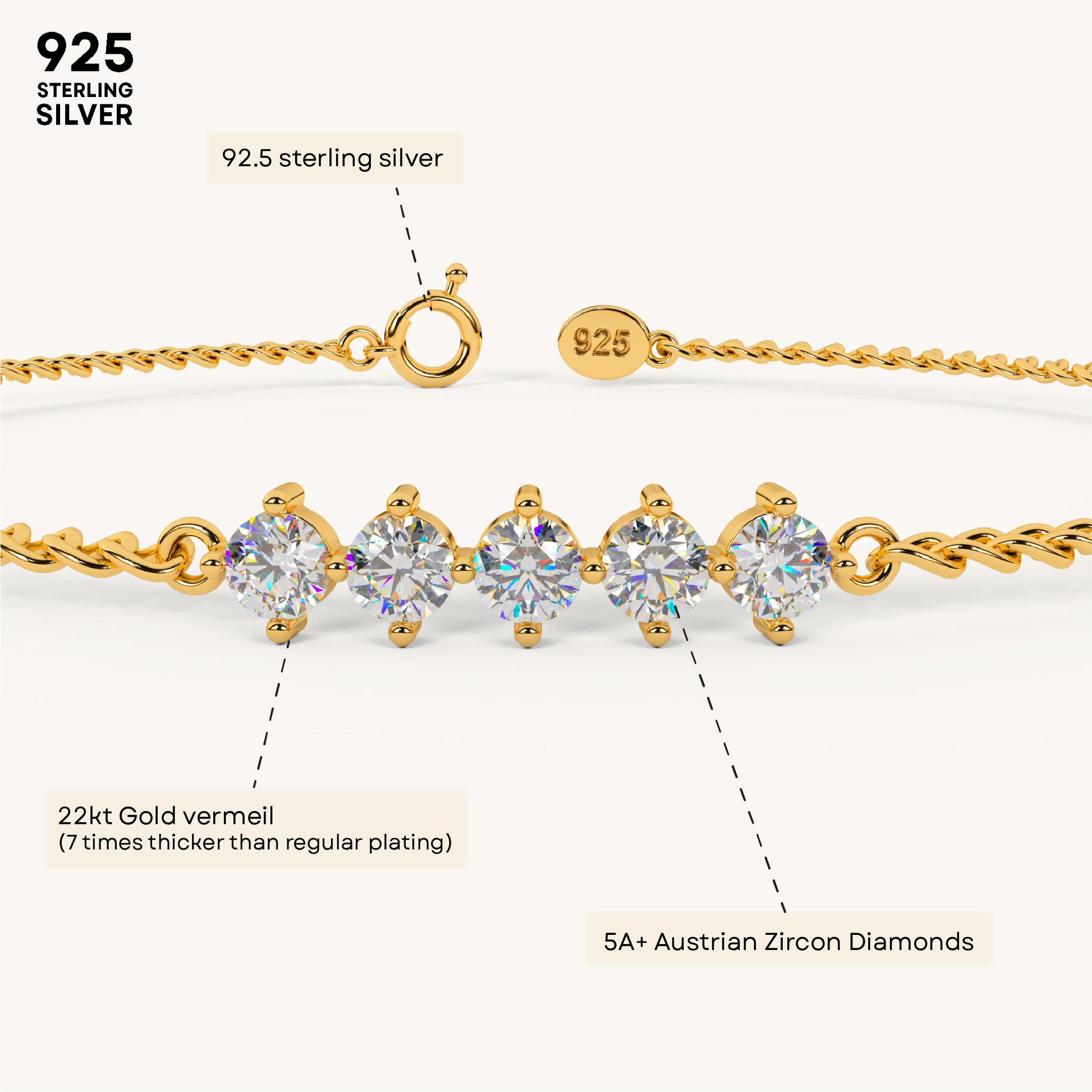 A sleek sparkle that speaks volumes 💫 The Twinkle Line Bracelet is crafted from 92.5 Sterling Silver 7x thicker coating of 22k gold vermeil and iced with 5A+ Austrian Zircon stones in a clean, shimmering row. Minimal, modern, and built to shine every day.