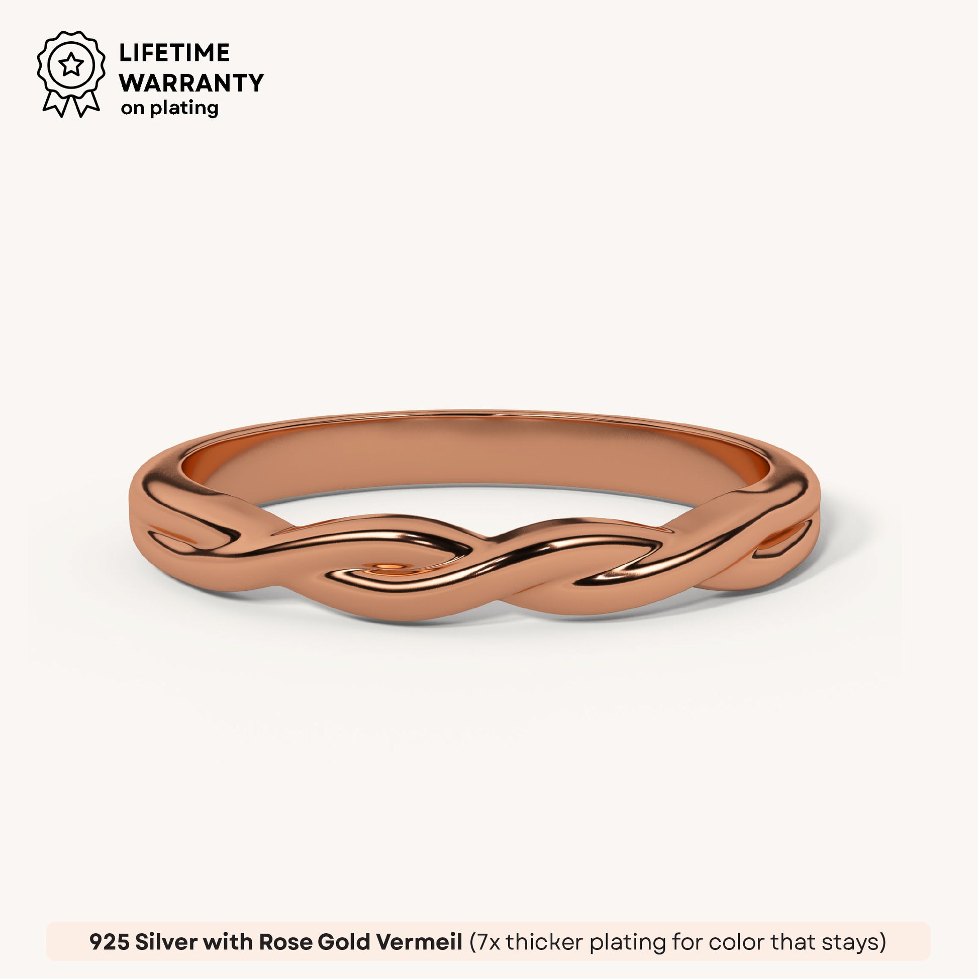 Graceful curves meet timeless elegance in this fluid wave band, adding a sleek, modern twist to your stack. Crafted in 92.5 Sterling Silver and finished with 22k Gold Vermeil with 7x thicker coating.